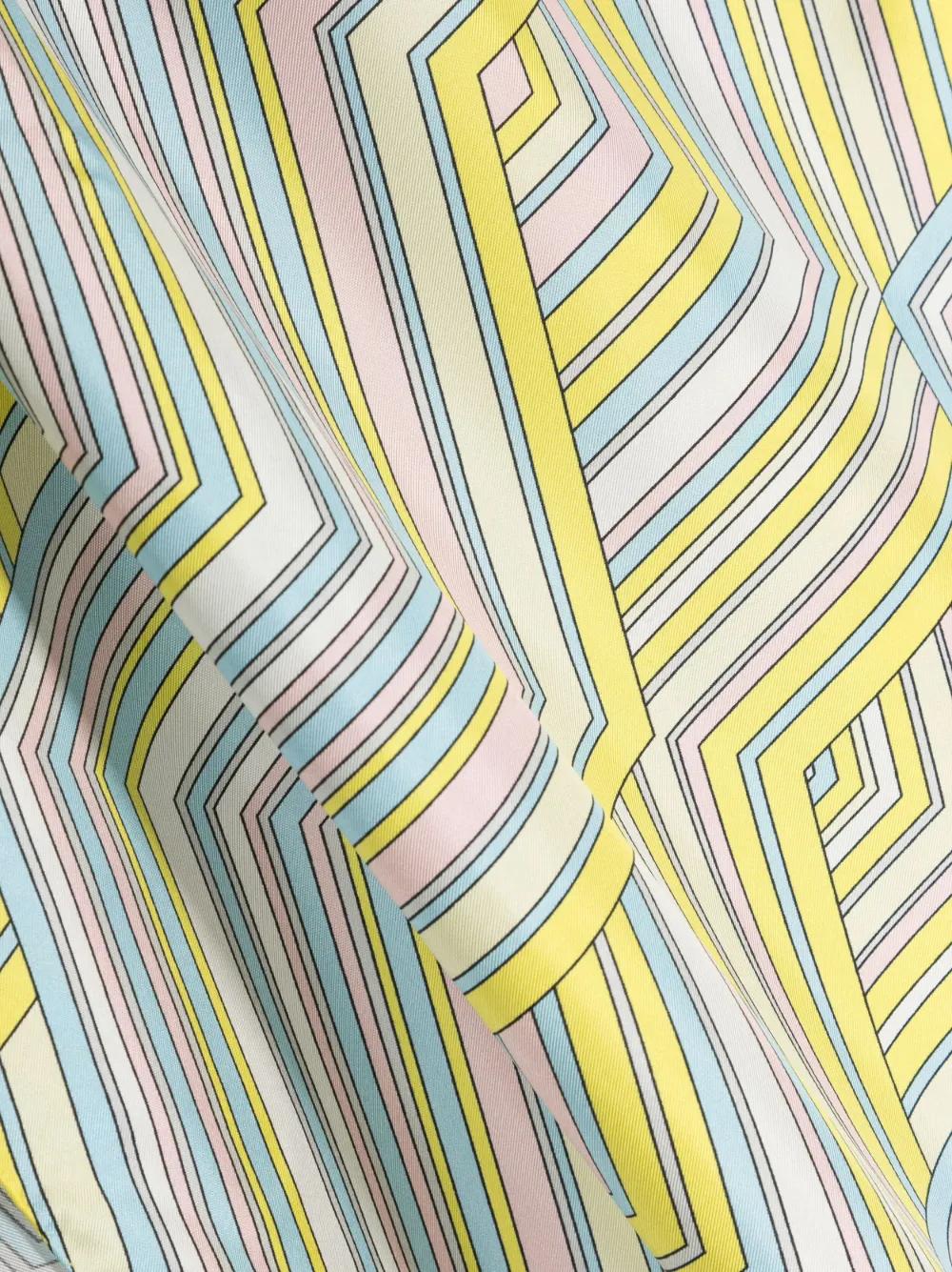 yellow/light pink/light blue silk twill weave zigzag print logo print at the hem