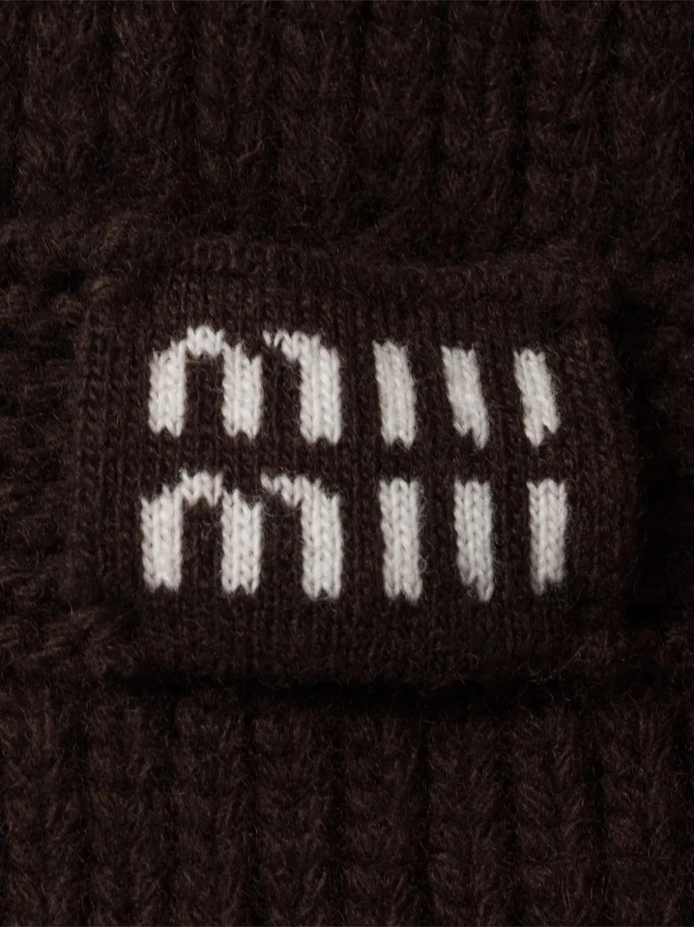 Miu Miu logo-intarsia cashmere scarf - Brown