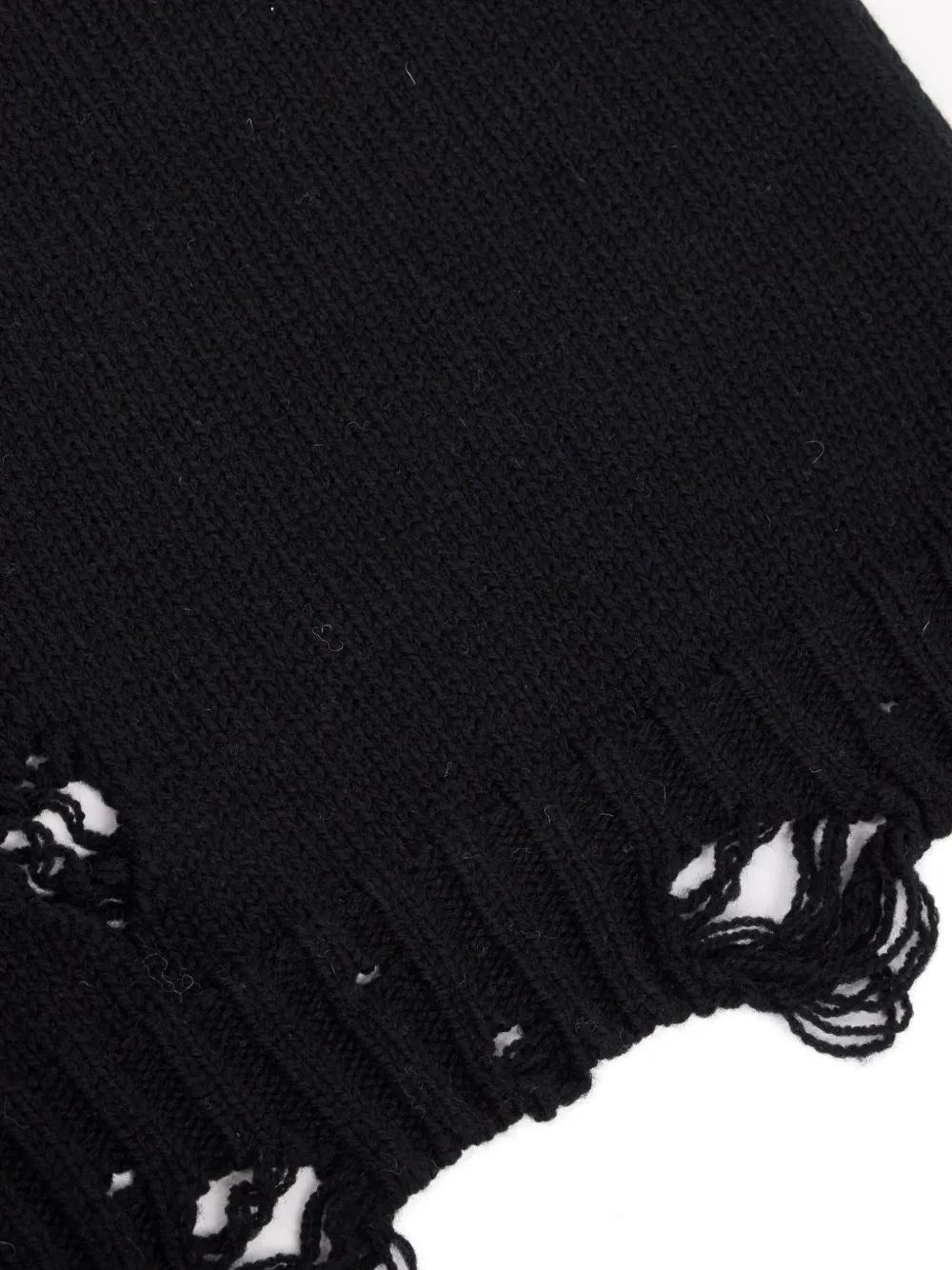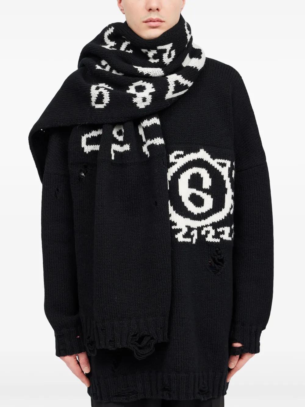 black/white virgin wool knitted construction intarsia-knit logo distressed effect signature numbers motif ribbed trim