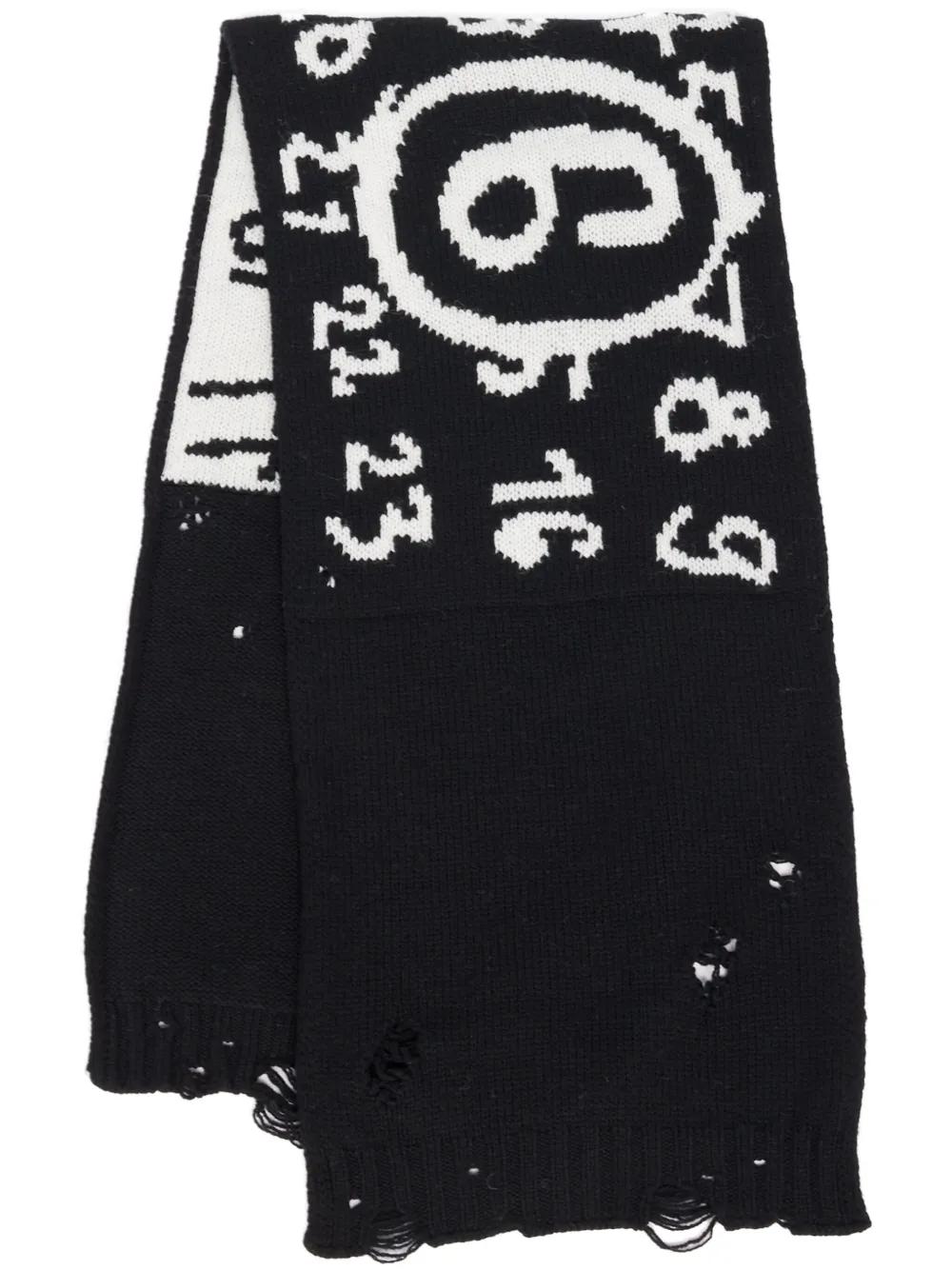 MM6 Maison Margiela Numbers-motif virgin wool scarf - Black