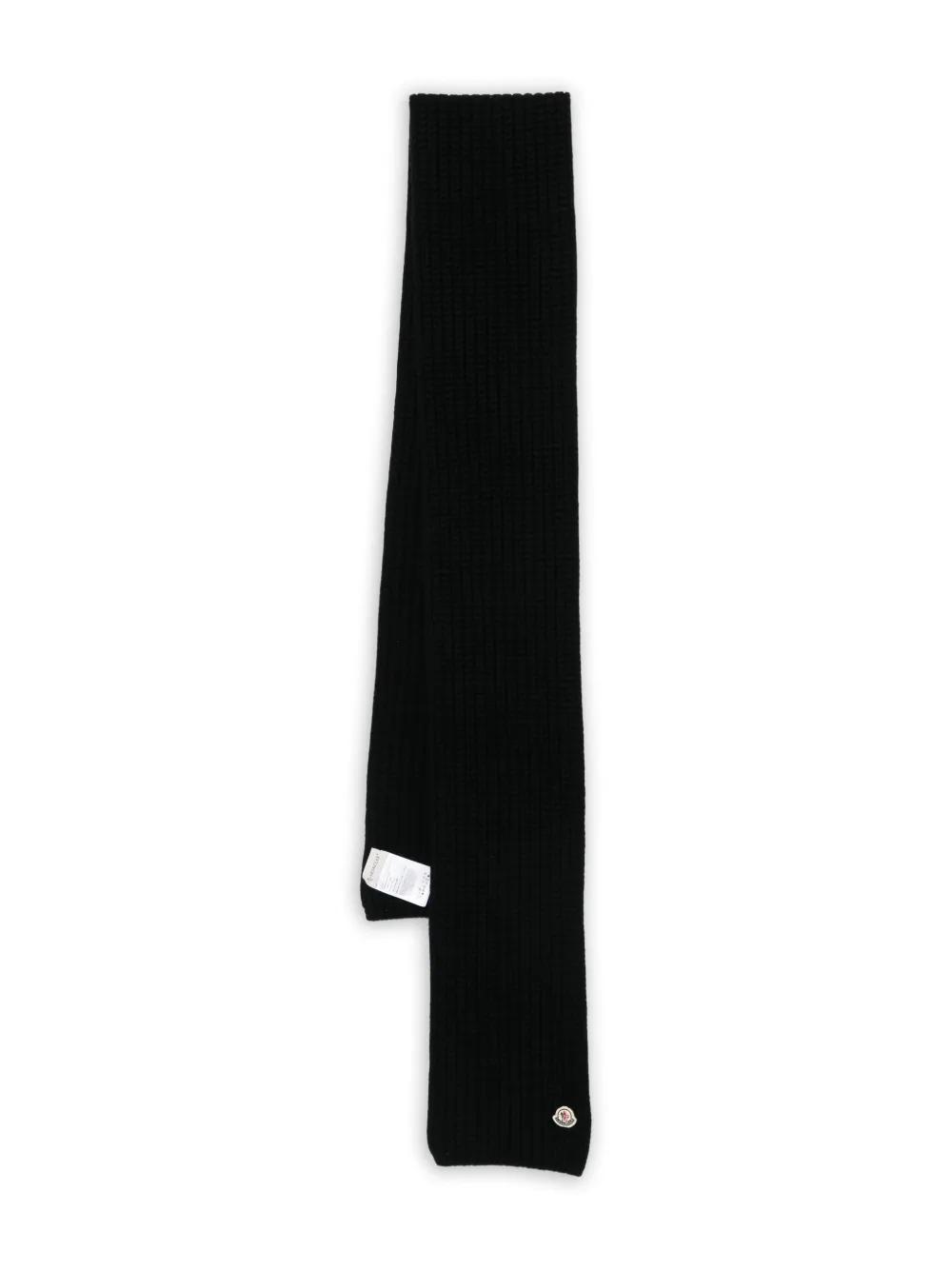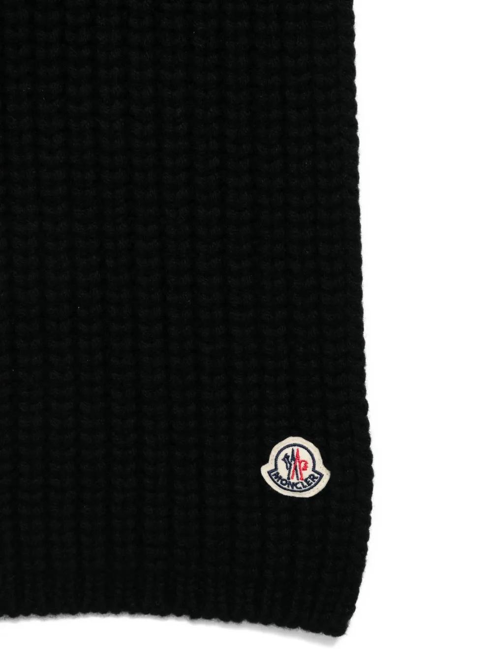 black ribbed texture virgin wool-cashmere blend logo patch rectangular shape