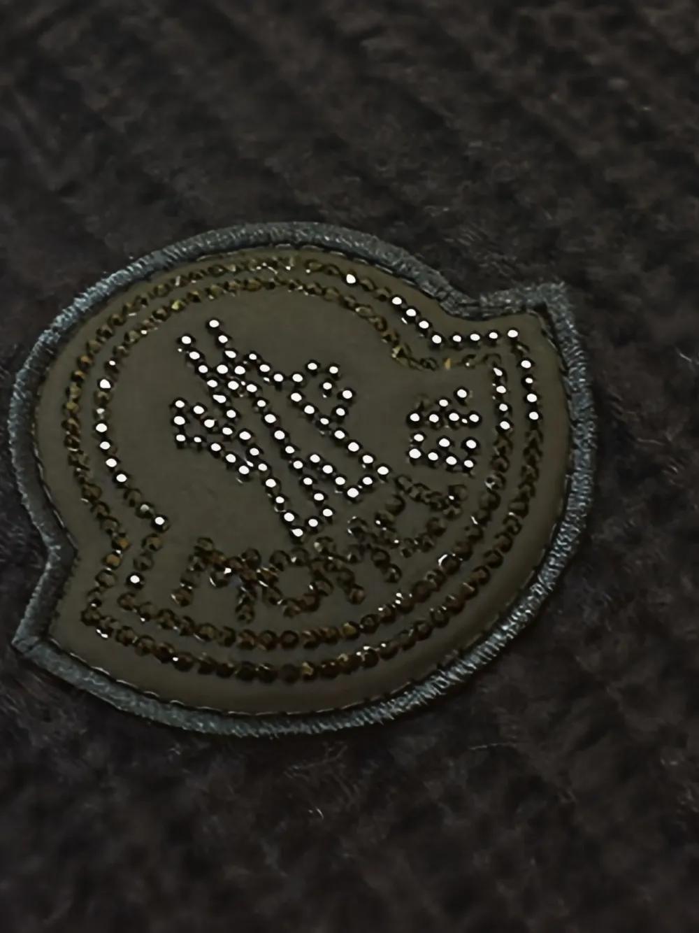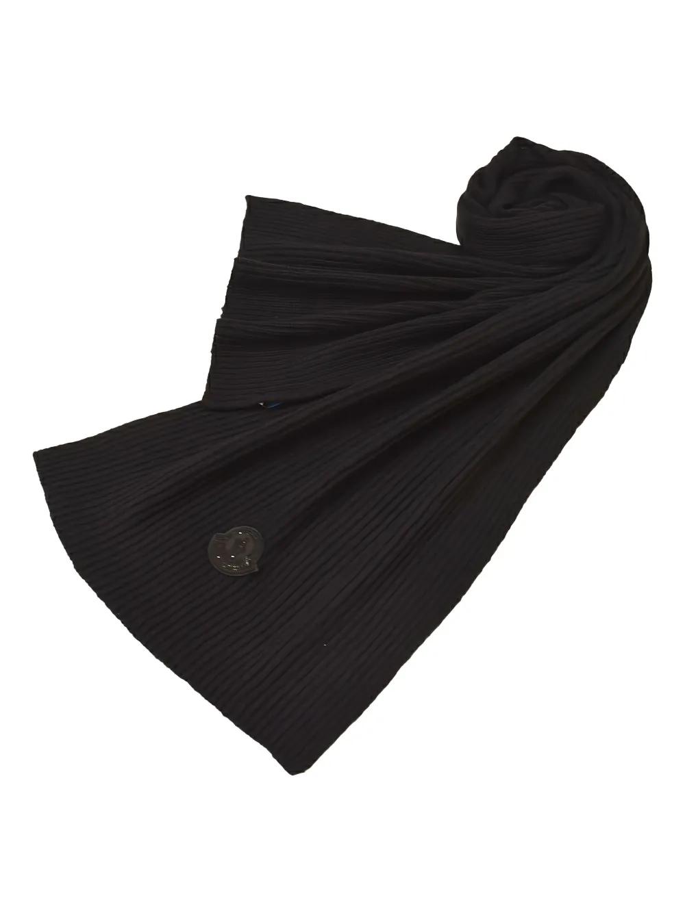 black ribbed texture logo patch crystal embellishment rectangular shape long length