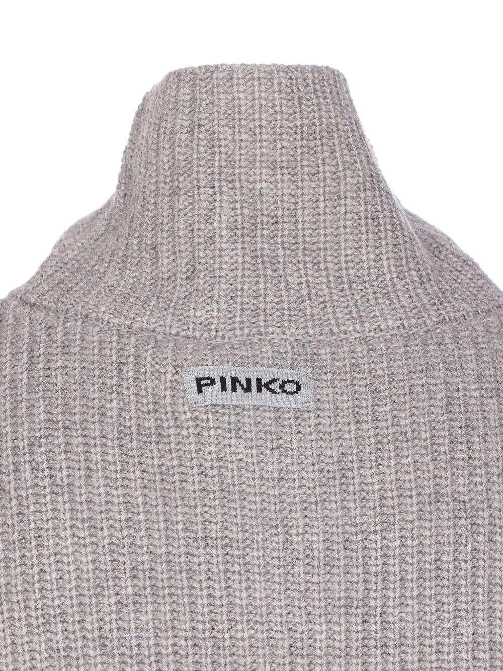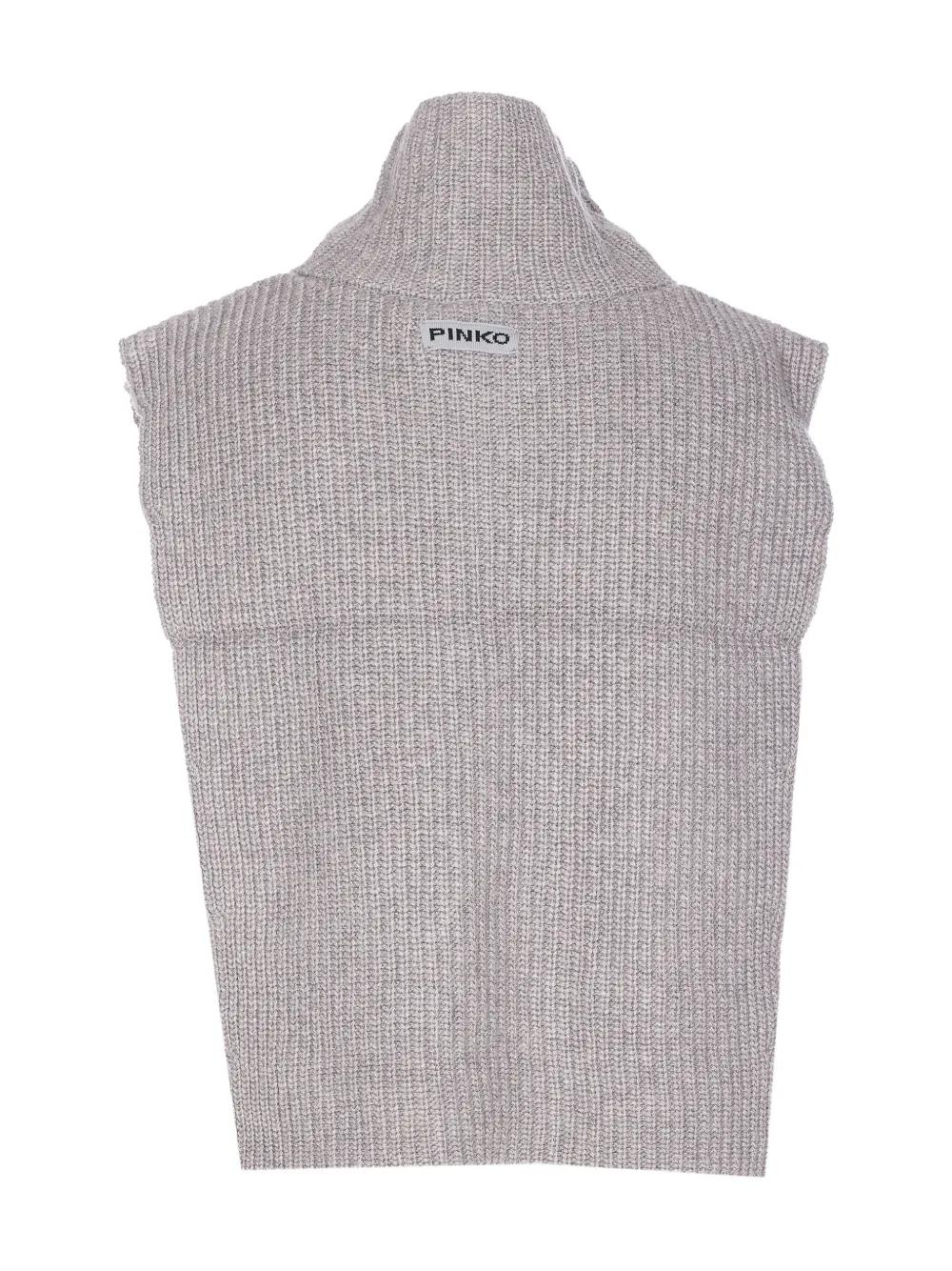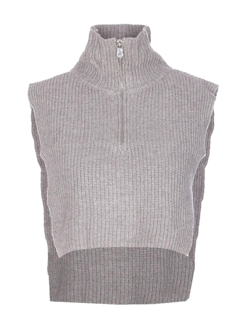 grey ribbed knit high-neck front zip fastening sleeveless logo patch