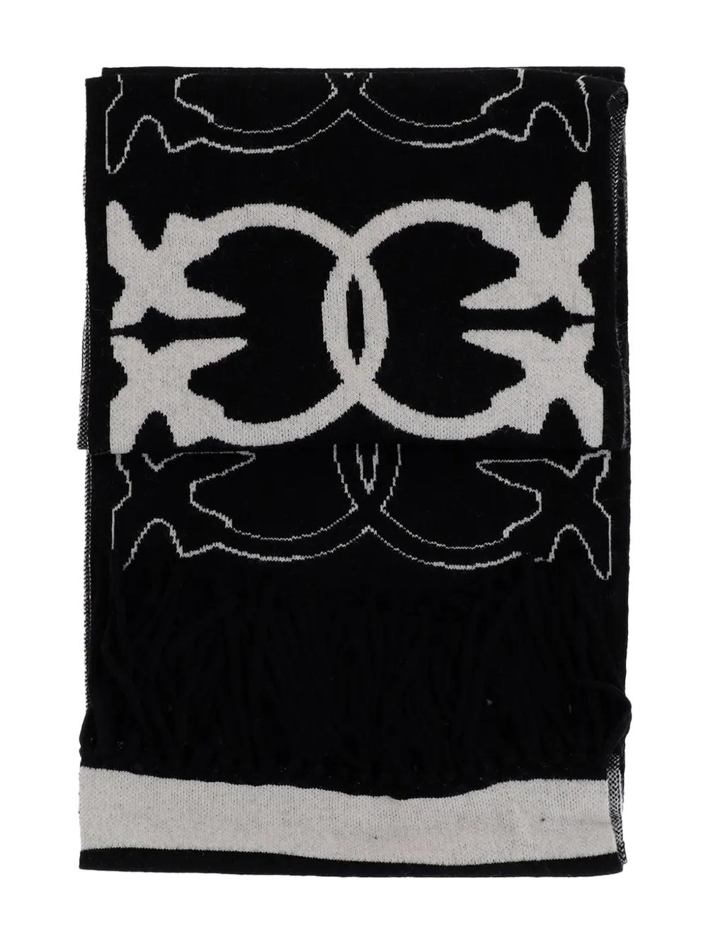 PINKO Love Birds fringed scarf - Black