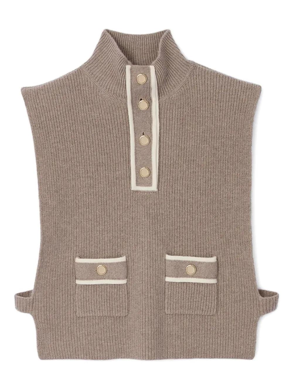 black ribbed knit zip fastening high-neck rear logo detail sleeveless