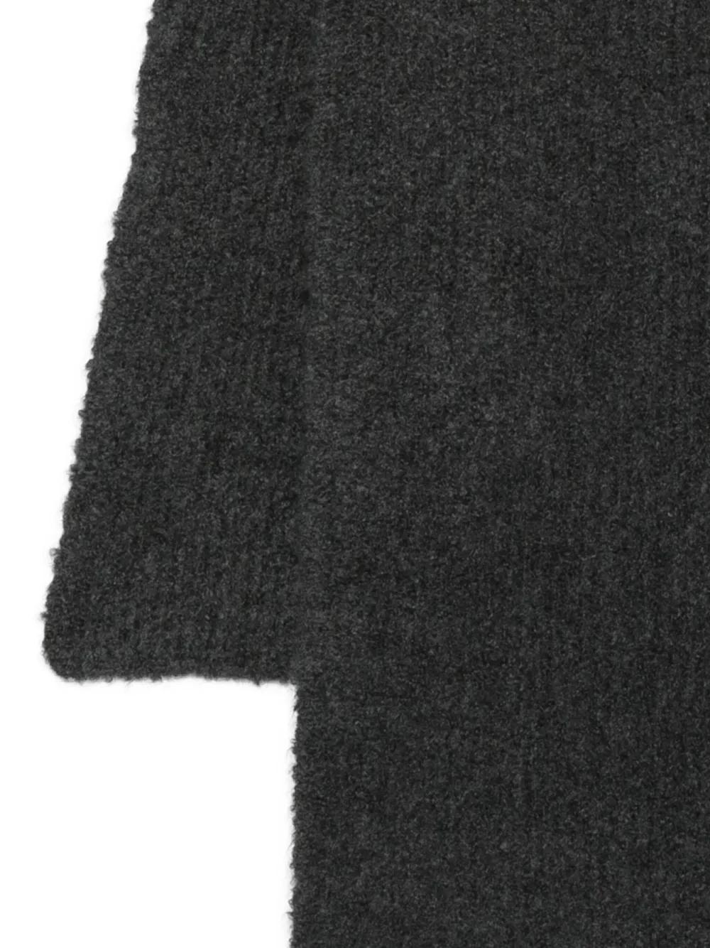 burgundy red/multicolour alpaca wool blend striped pattern logo intarsia fringed edge rectangular shape