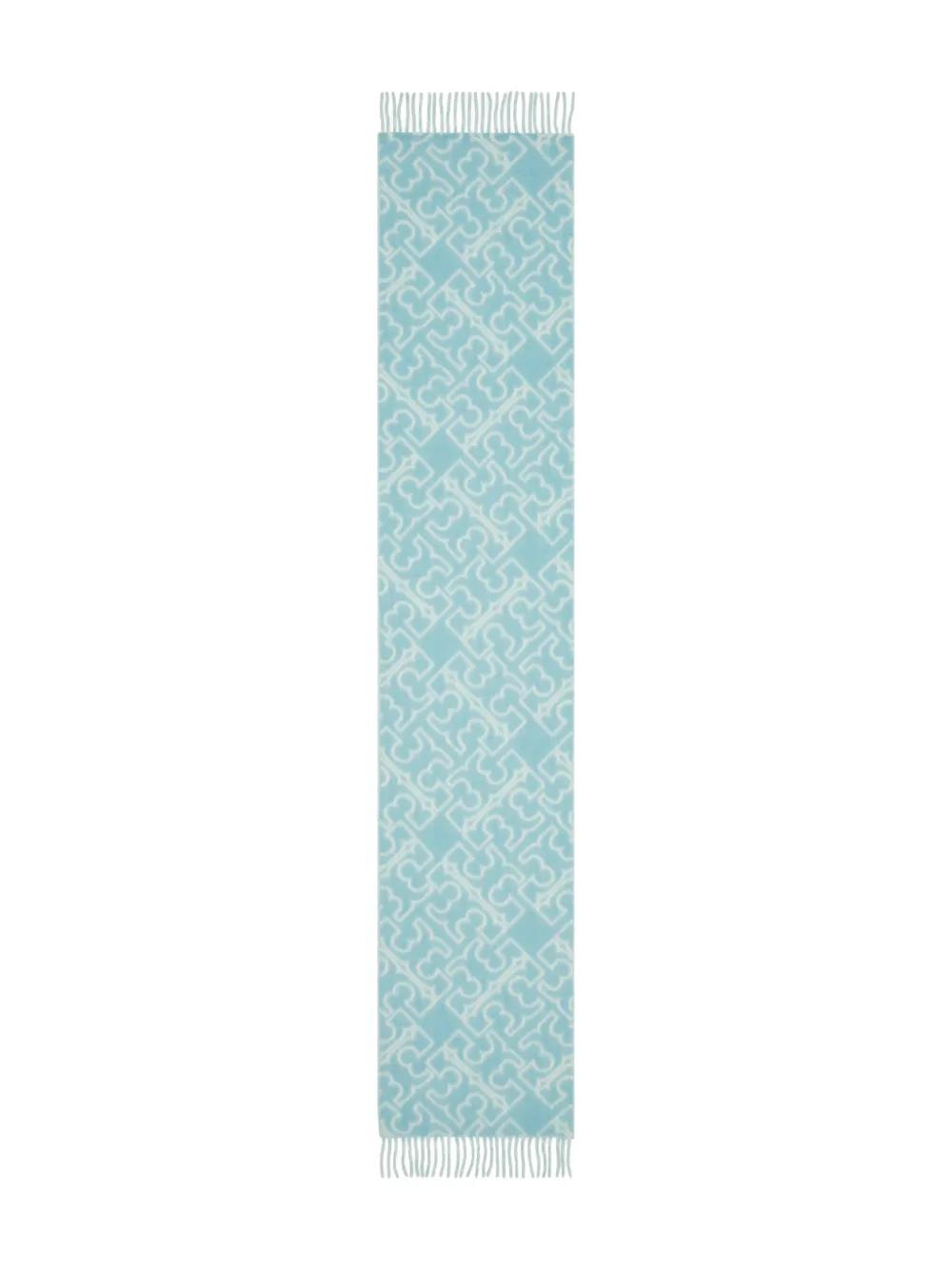 Tory Burch logo-pattern fringed scarf - Blue