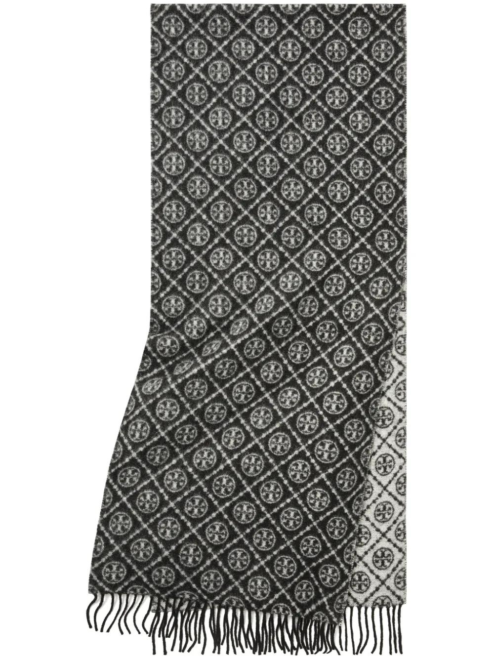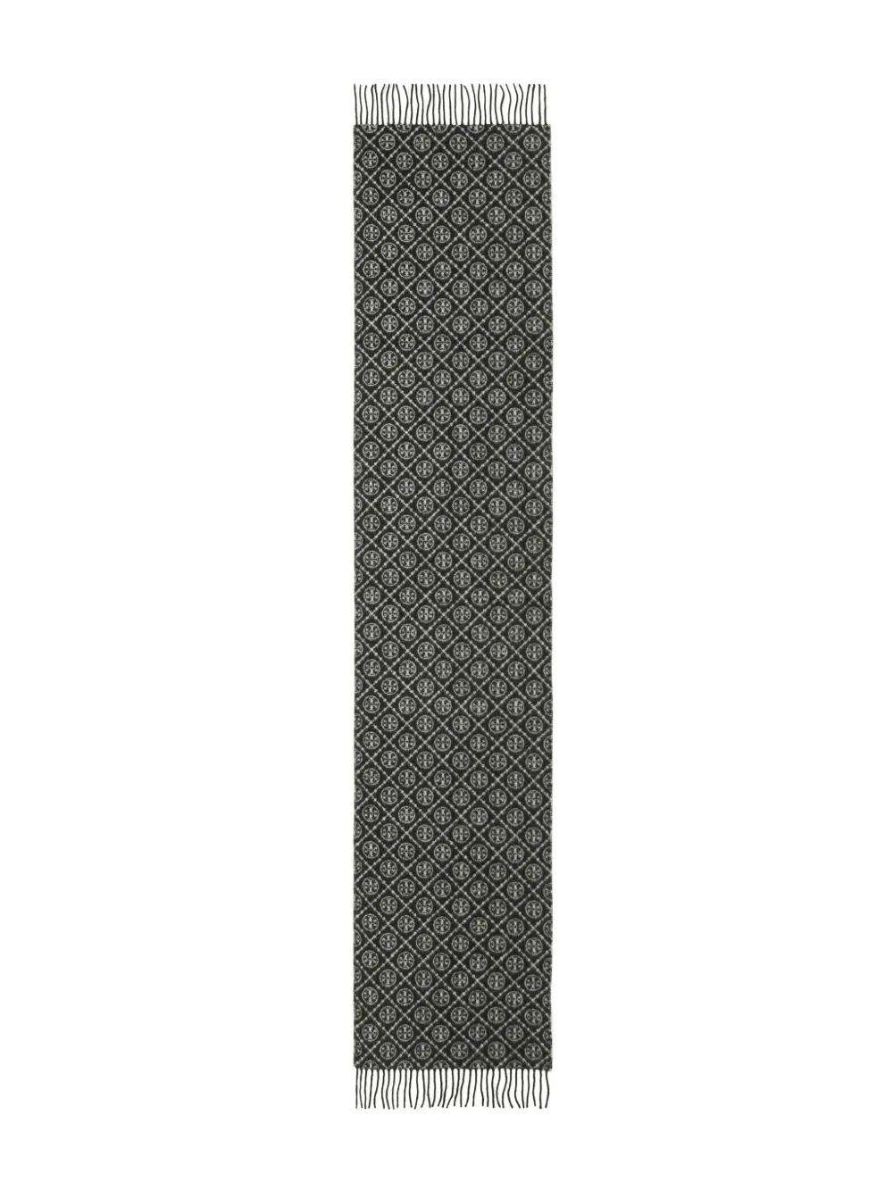 black/white wool-cashmere blend knitted construction brushed finish monogram pattern fringed edge wraparound style