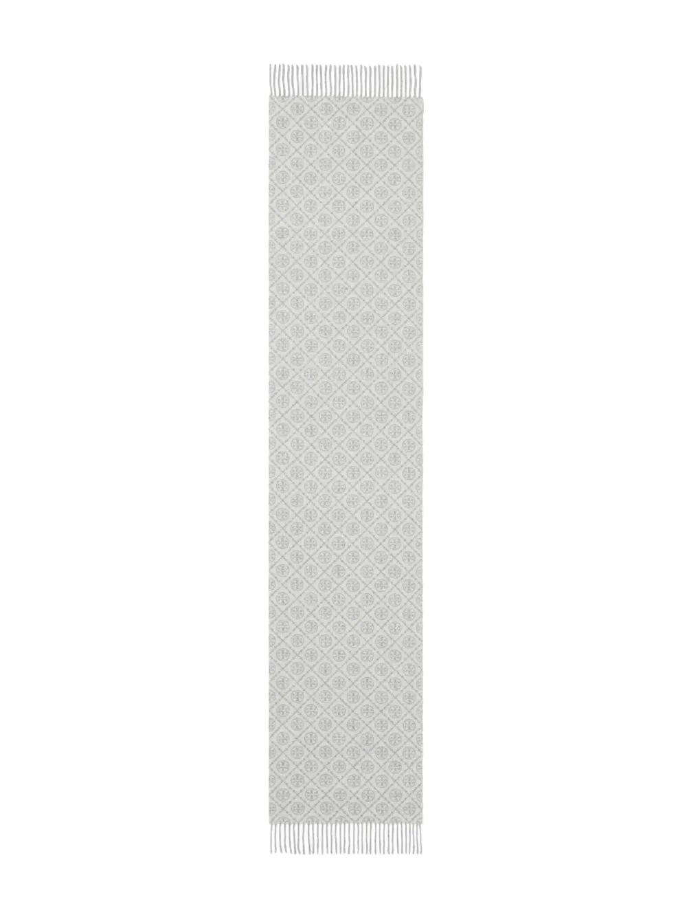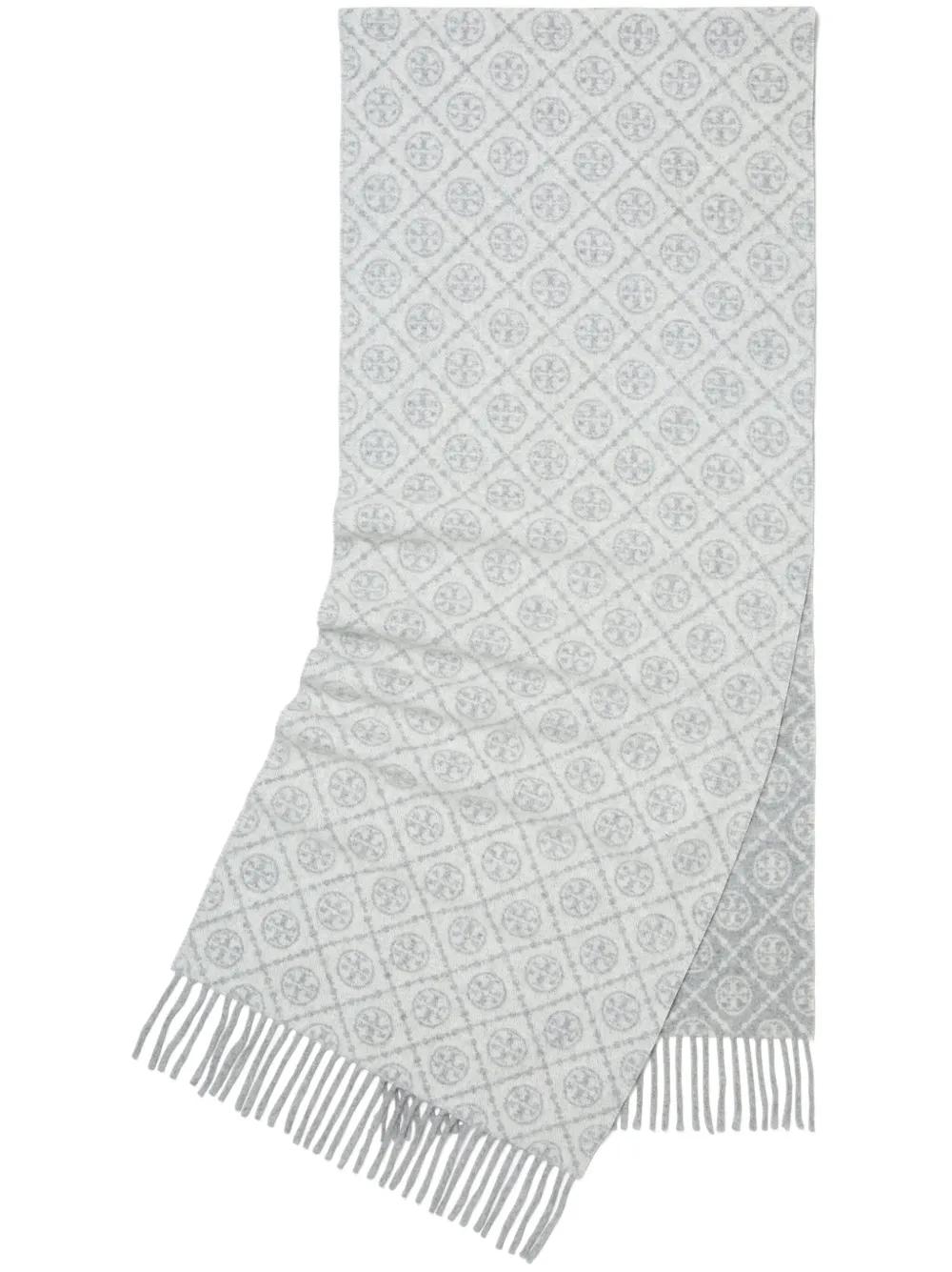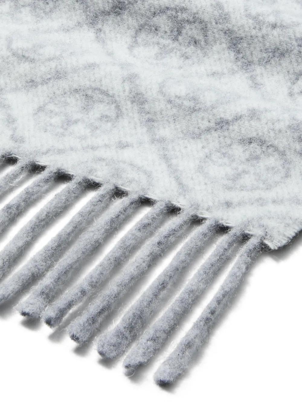 light grey wool-cashmere blend patterned jacquard fringe detailing wraparound style