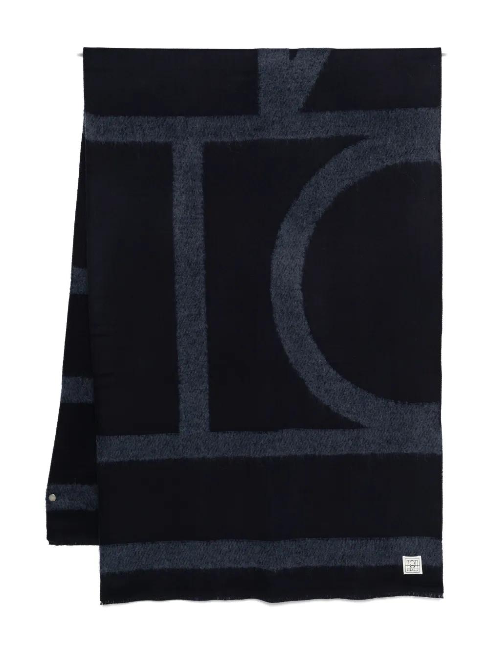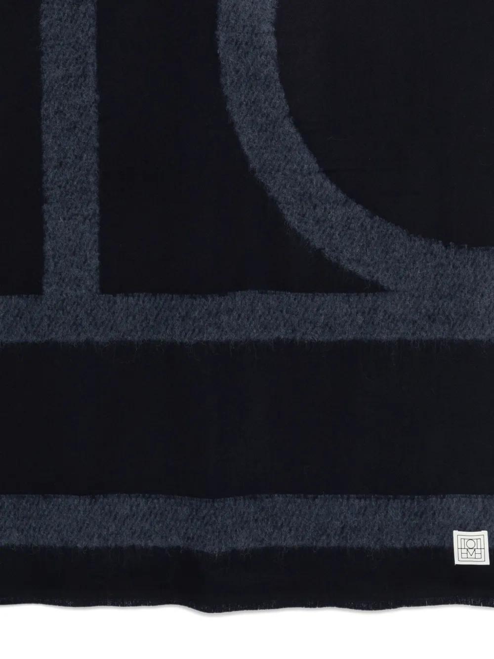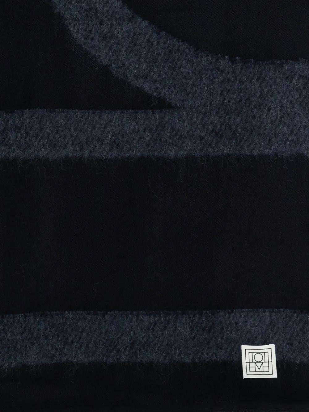 burgundy red/multicolour alpaca wool blend striped pattern logo intarsia fringed edge rectangular shape