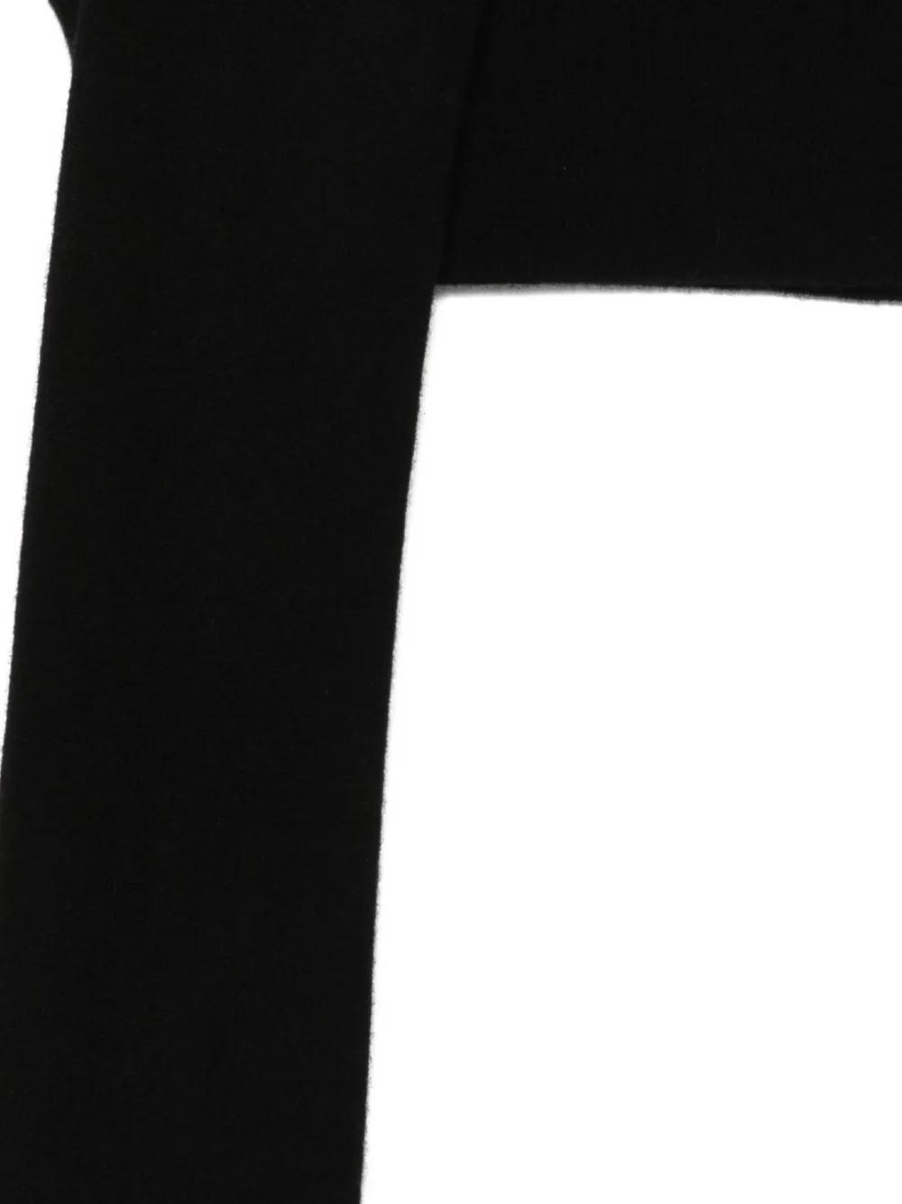black wool knitted construction embroidered logo rectangle shape wraparound style