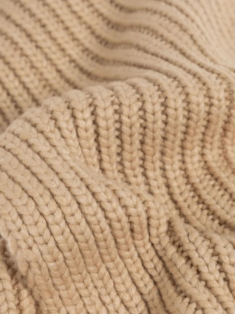 beige ribbed knit logo detail