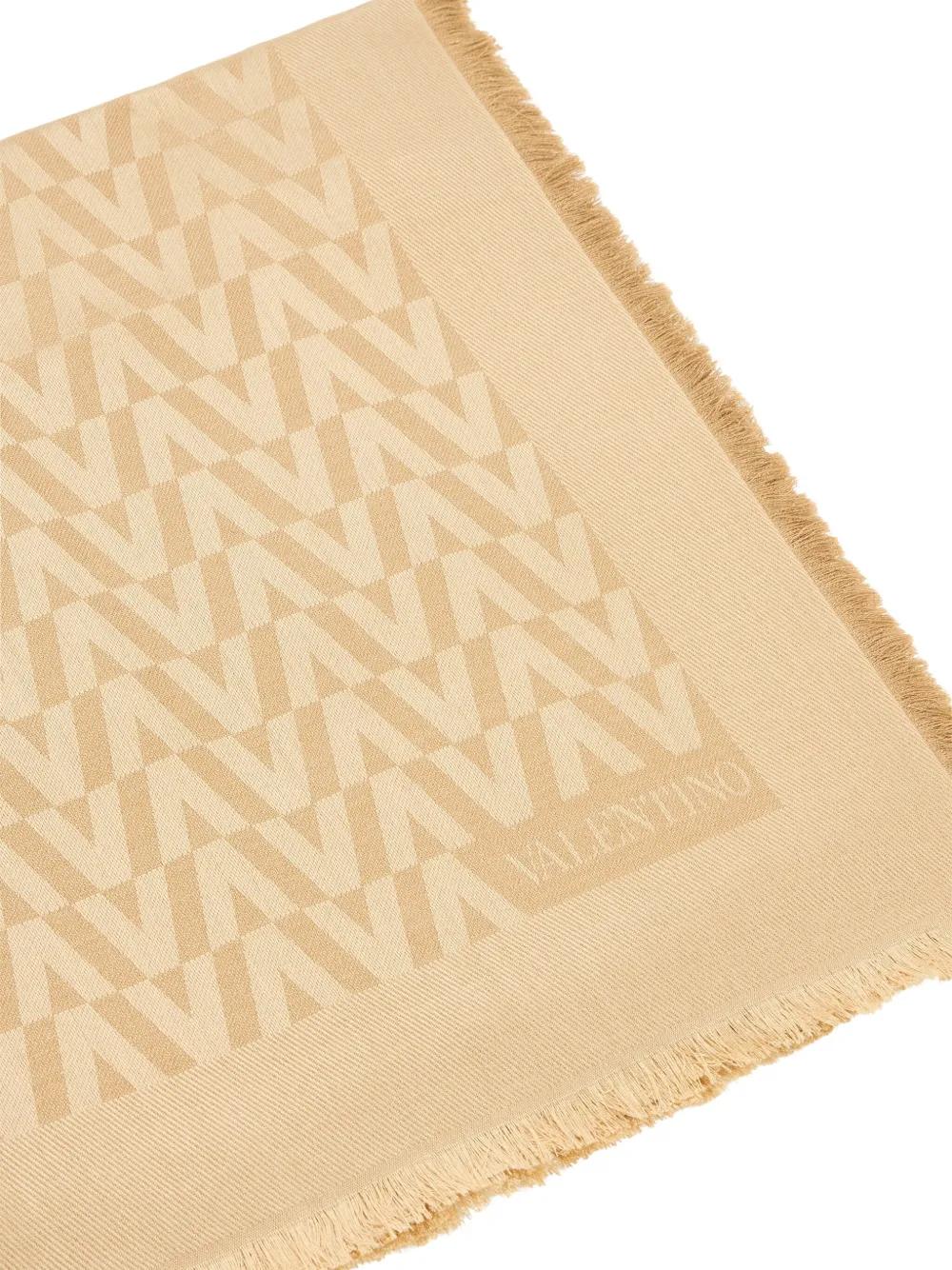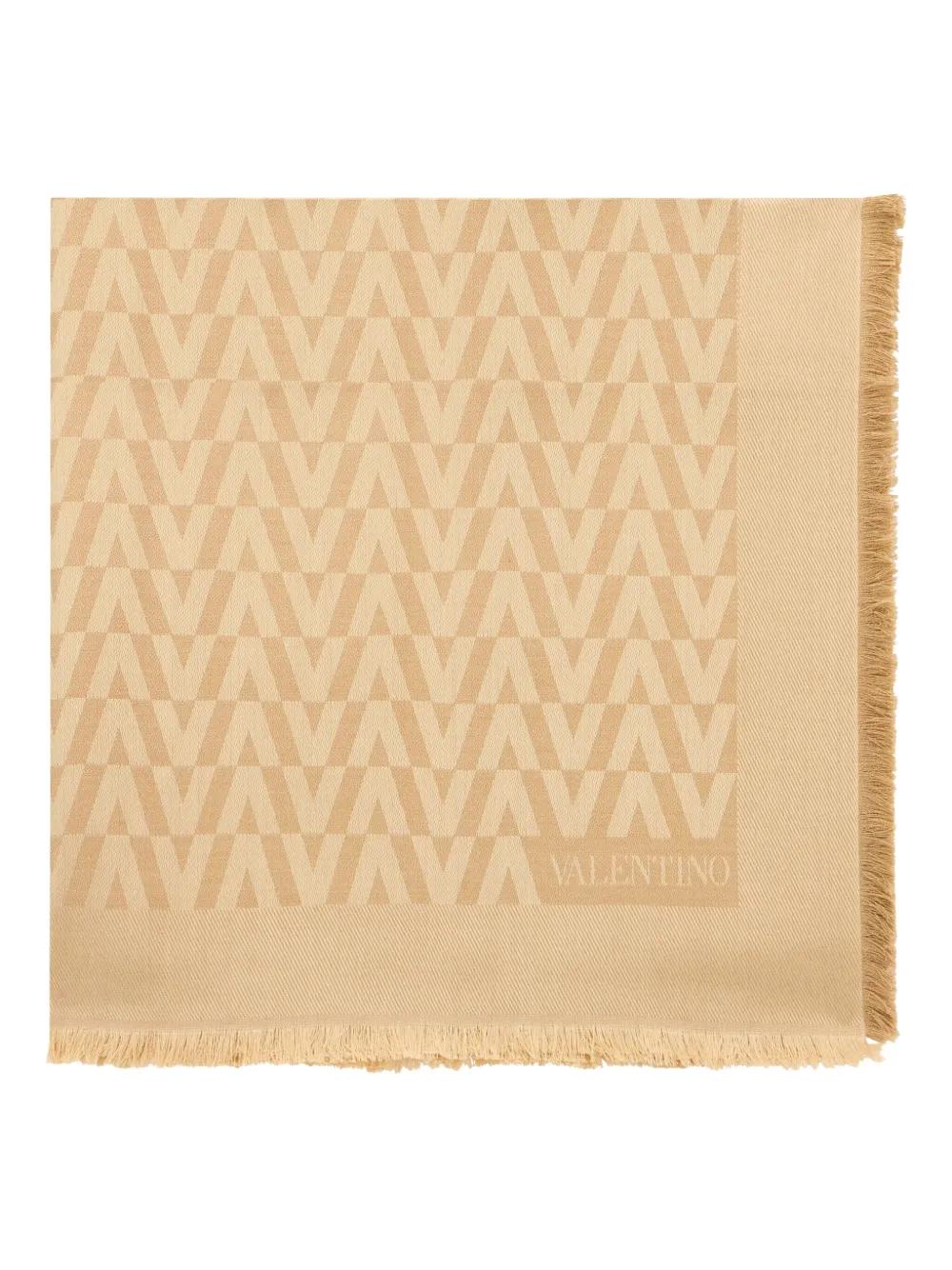 Valentino Ready To Wear black/white cashmere monogram jacquard square shape fringed edge