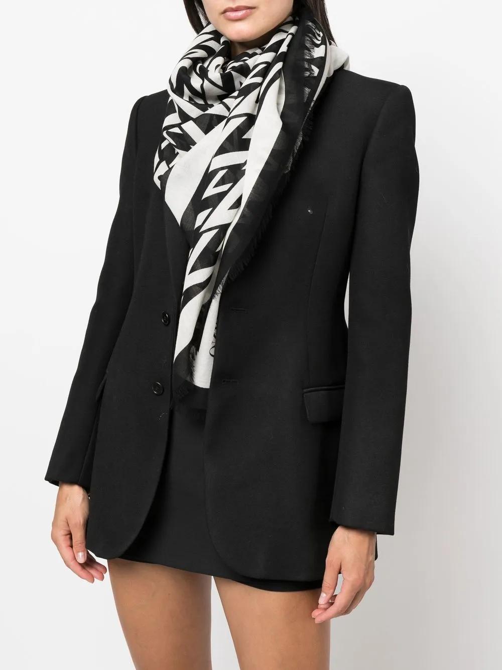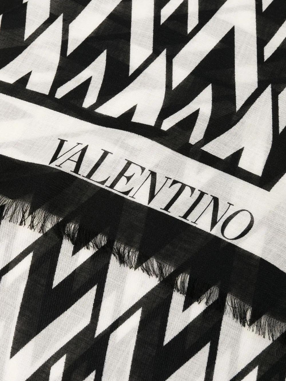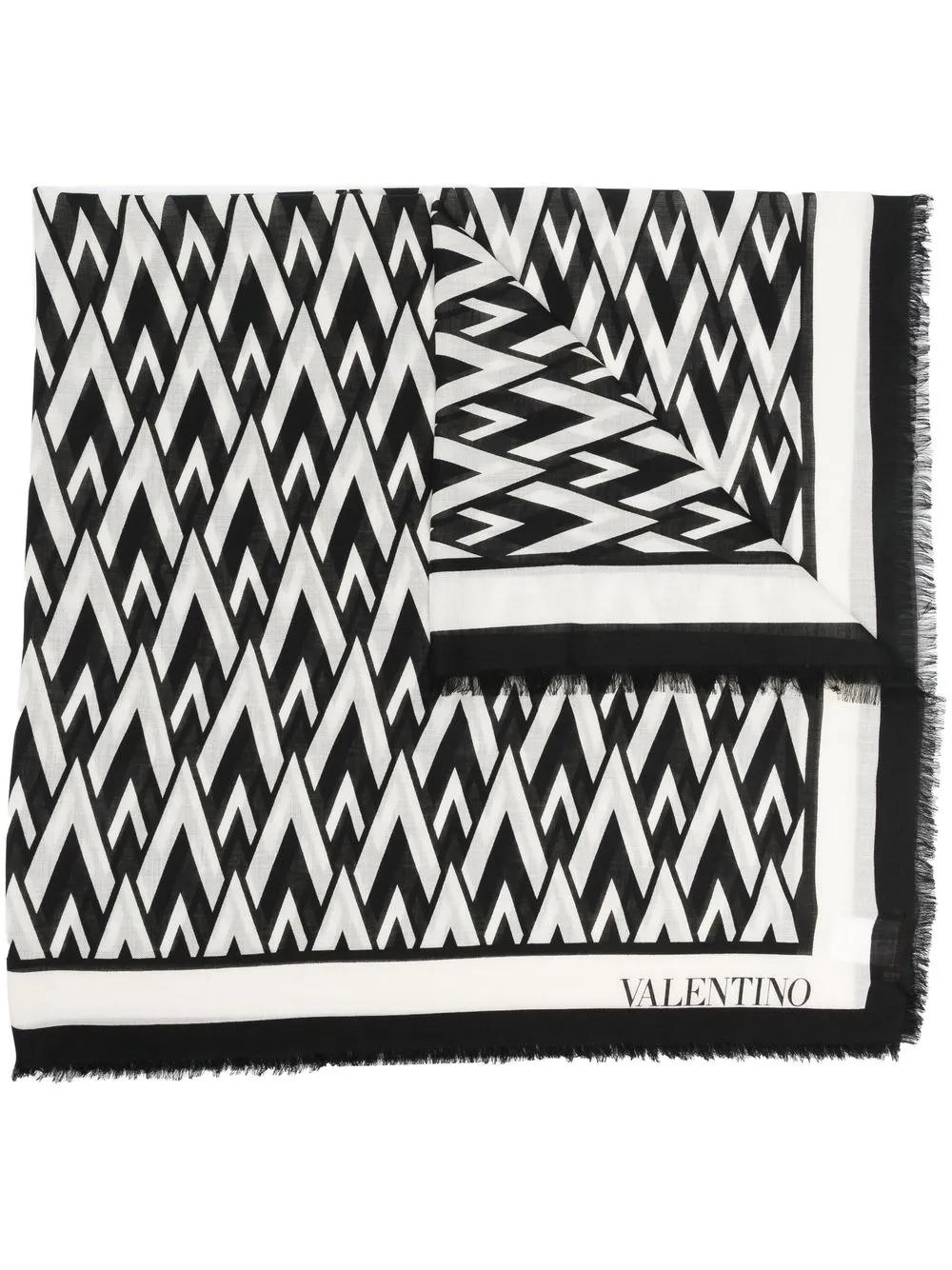 Valentino Ready To Wear black/white cashmere monogram jacquard square shape fringed edge
