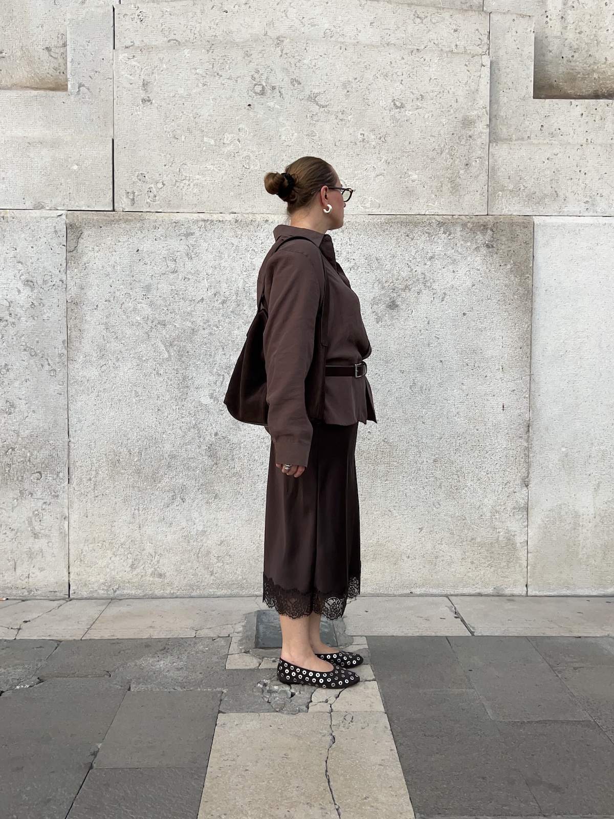2. Baleriny z kwadratowym noskiem. Jeśli jednak szukasz czegoś, co doda Twoim stopom bardziej geometrycznego wyglądu - baleriny z kwadratowym noskiem okażą się strzałem w dziesiątkę. Model typu square toe to ukłon w stronę estetyki lat 90. i współczesnego minimalizmu. Kwadratowe wykończenie nie tylko optycznie skraca stopę, ale przede wszystkim nadaje butom architektonicznego charakteru, którego brakuje klasycznym, okrągłym noskom. To idealny wybór dla kobiet, które cenią sobie elegancję, ale nie chcą rezygnować z wygody płaskiej podeszwy podczas intensywnego dnia w pracy i w mieście.