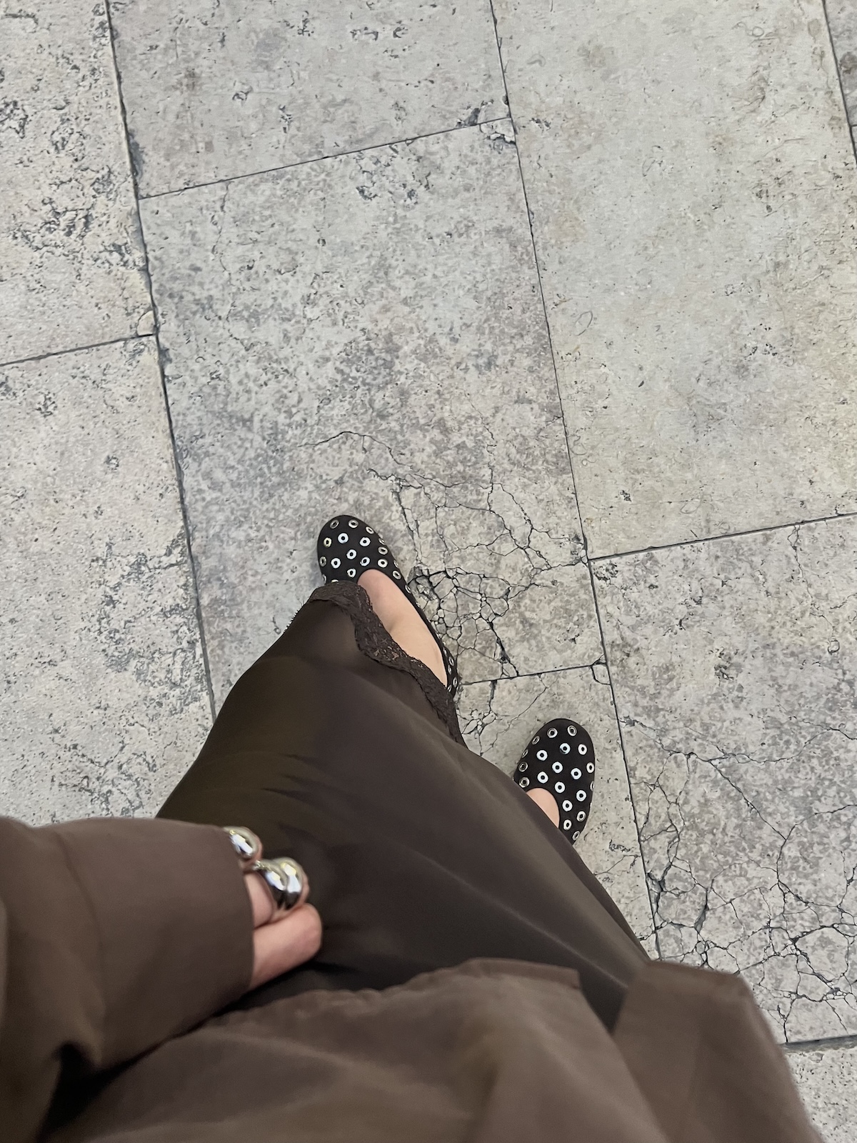 4. Baleriny z ćwiekami i dżetami - ozdobne baleriny przestały być zarezerwowane wyłącznie na wieczorne wyjścia i oficjalne gale. W aktualnych trendach nosimy je do beżowych trenczy, jeansów, a nawet kwiecistych sukienek. To najprostszy sposób na to, by przemycić do swojej szafy odrobinę miksu dziewczęcej lekkości z rockowym, niemal buntowniczym charakterem, nie tracąc przy tym nic z klasycznej elegancji, którą tak kochamy w balerinach. Te modele, udowadniają, że płaskie buty mogą mieć niesamowity pazur i dominować w całej stylizacji. Metaliczne zdobienia, od drobnych, biżuteryjnych kuleczek po masywne kolce, nadają butom trójwymiarowości i niepokornego charakteru. Baleriny zdobione dżetami to idealny sposób na przełamanie „grzecznego” wizerunku. Moim zdaniem fantastycznie komponują się z najzwyklejszymi jeansami typu straight czy baggy lub w zaskakującym zestawieniu ze zwiewnymi, transparentnymi spódnicami, tworząc intrygujący kontrast tekstur (lekka spódnica i cięższe, biżuteryjne baleriny). W przypadku takich ozdobnych butów nie przesadzałabym z biżuterią, a akcesoria niech pozostaną klasyczne i proste.