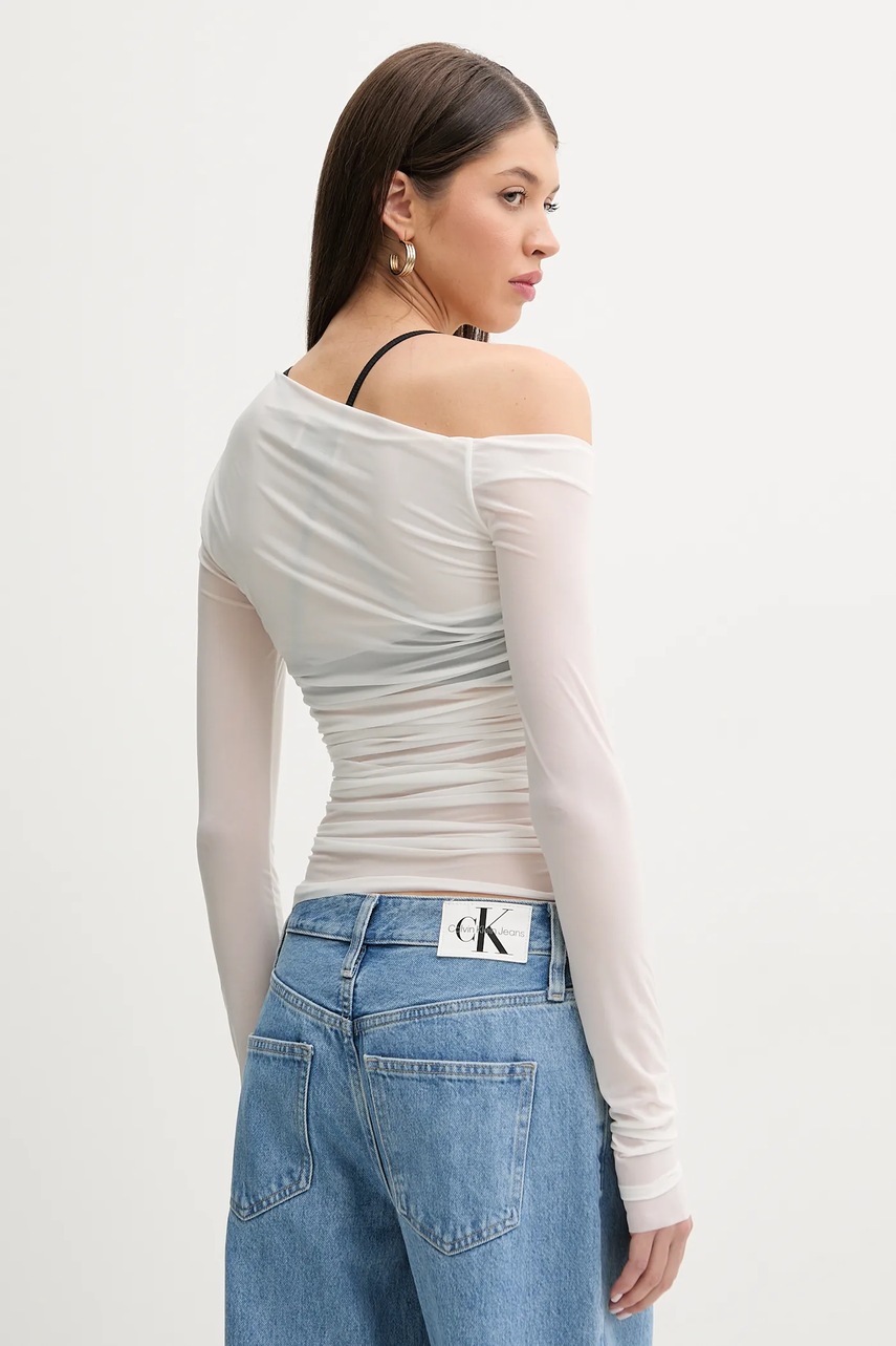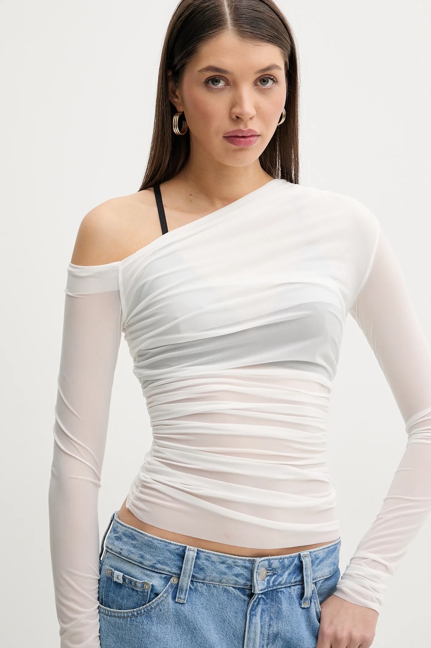 - Dopasowany, podkreślający sylwetkę fason. - Model z ozdobnymi marszczeniami. - Asymetryczny dekolt.