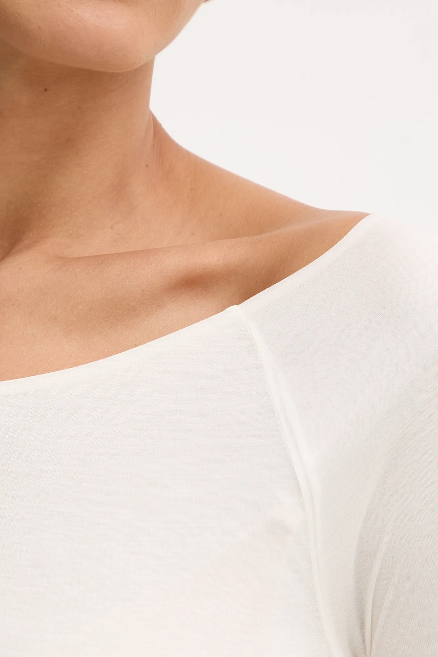 - W procesie produkcyjnym modalu stosuje się ekologiczne metody, które zapewniają oszczędność wody oraz energii. - Dopasowany, podkreślający sylwetkę fason. - Dekolt typu łódka. - Rękaw raglanowy, dzięki swojej konstrukcji, zapewnia większą swobodę ruchu. - Długie, dopasowane rękawy. - Dodatkowa warstwa materiału w postaci podszewki zwiększa krycie i daje dodatkowy komfort podczas aktywności. - Długość rękawa(mierzona od dekoltu): 75 cm. - Długość: 64 cm. - Szerokość pod pachami: 46 cm. - Wymiary podane dla rozmiaru: S.