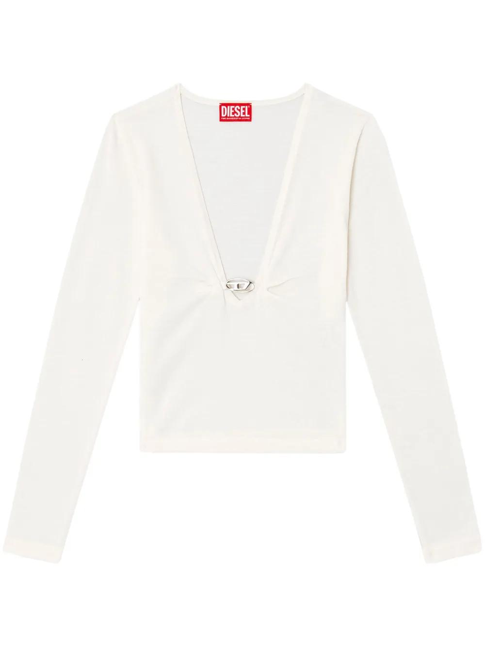 white wool fine ribbed plunging V-neck Oval D logo plaque long sleeves straight hem