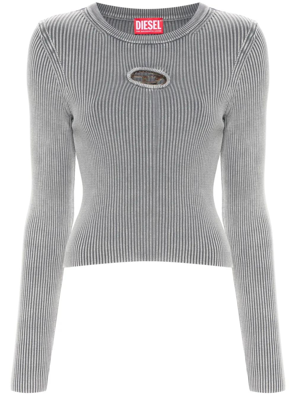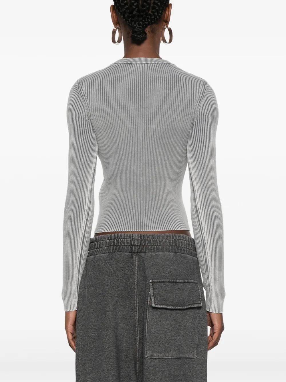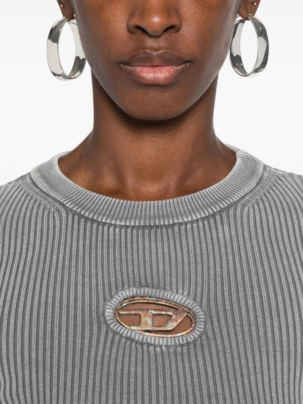 light grey cotton knitted construction ribbed knit crew neck cut-out detailing logo plaque long sleeves