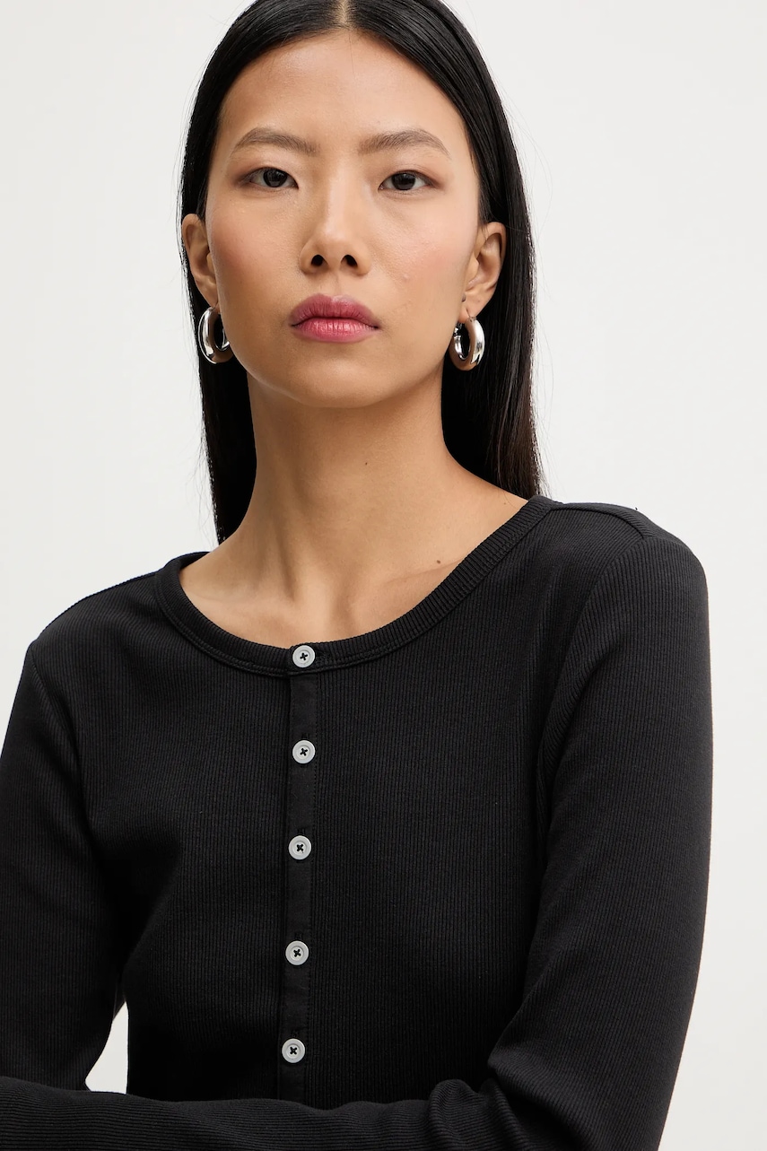 - Ten produkt został uszyty częściowo z certyfikowanej bawełny organicznej, która jest uprawiana i zbierana z roślin niezmodyfikowanych genetycznie, bez użycia nawozów i pestycydów. Proces produkcji bawełny organicznej jest bardziej przyjazny dla środowiska, a produkty z niej uszyte bardziej przyjazne dla Ciebie. Nasza bawełna posiada certyfikat OCS 100 (Organic Content Standard), który weryfikuje zawartość włókien organicznych w produkcie końcowym – dzięki temu możesz być pewien, że nasza bawełna jest organiczna. - Zapięcie na guziki. - Okrągły dekolt. - Dopasowany fason. - Długi rękaw. - Prążkowana dzianina. - Cienka, elastyczna dzianina. - Długość rękawa: 68 cm. - Długość: 63 cm. - Szerokość pod pachami: 38 cm. - Wymiary podane dla rozmiaru: S.