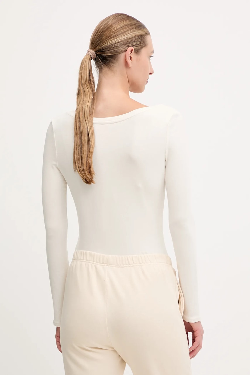 - Ten produkt został uszyty z certyfikowanej bawełny organicznej, która jest uprawiana i zbierana z roślin niezmodyfikowanych genetycznie, bez użycia chemicznych nawozów i pestycydów. - Dopasowany model w fasonie body. - Klasyczny, okrągły dekolt. - Haftowane logo. - Długie, dopasowane rękawy. - Długość rękawa: 60 cm. - Długość: 69 cm. - Szerokość pod pachami: 46 cm. - Wymiary podane dla rozmiaru: S.