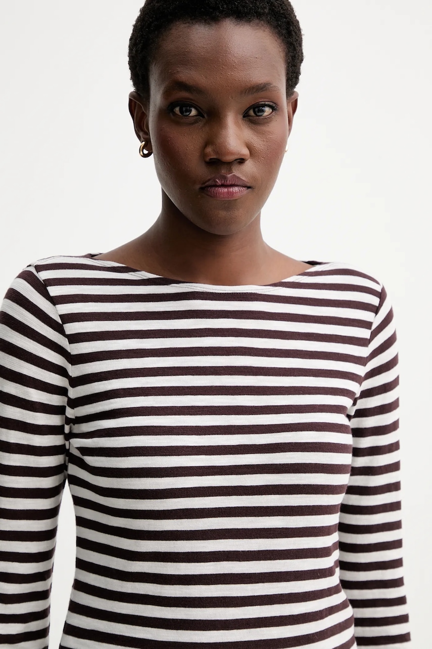 - Produkt wyprodukowany zgodnie z założeniami Fair Wear Foundation, organizacji zrzeszającej marki odzieżowe tworzące produkty w bardziej zrównoważony i etyczny sposób. Produkty oznaczone znakiem Fair Wear powstały w fabrykach, które pozytywnie przeszły zewnętrzny audyt i zapewniają pracownikom odpowiednie warunki pracy oraz wynagrodzenie. - Produkt oznaczony certyfikatem Global Organic Textile Standard (GOTS), gwarantującym wysoką jakość wyrobu, zgodną z określonymi normami ekologicznymi. Proces certyfikowania obejmuje wszystkie etapy wytwarzania produktów z materiałów naturalnych, od surowca aż po gotowy produkt. - Prosty, nie blokujący ruchów fason. - Dekolt typu łódka. - Długie, proste rękawy. - Długość rękawa: 67 cm. - Długość: 66 cm. - Szerokość pod pachami: 45 cm. - Wymiary podane dla rozmiaru: S.