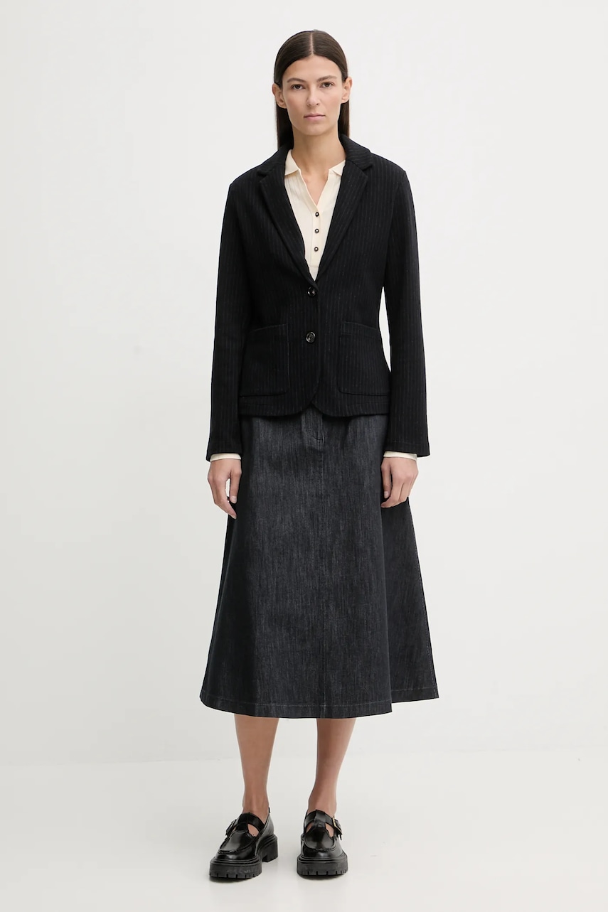 - (OCS) ORGANIC CONTENT STANDARD. Produkty z tym certyfikatem zawierają co najmniej 50% organicznych włókien naturalnych - bez syntetycznych pestycydów i nawozów chemicznych. Łańcuch dostaw tych wyrobów tekstylnych jest kontrolowany w celu zagwarantowania, że produkt zawiera materiał pozyskany w sposób ekologiczny. - Dopasowany, podkreślający sylwetkę fason. - Krótkie zapięcie na guziki. - Model z miękkim kołnierzykiem. - Model wykonany z dzianiny prążkowanej. - Długość rękawa: 55 cm. - Długość: 56 cm. - Szerokość pod pachami: 43 cm. - Wymiary podane dla rozmiaru: S.