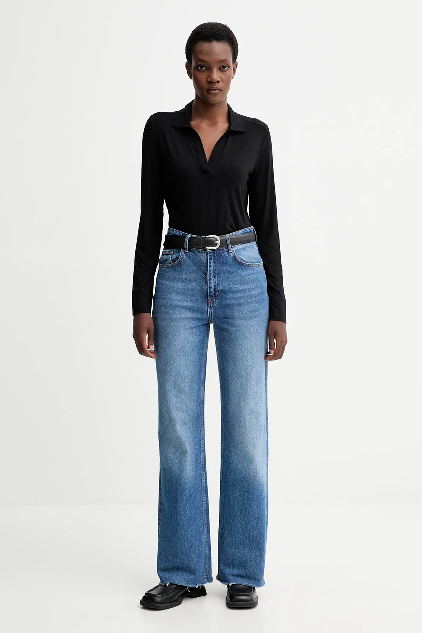 - Model wykonany z wiskozy, która powstaje z celulozy drzewnej wytwarzanej z drzew uprawianych w certyfikowanych lasach. - Prosty, nie blokujący ruchów fason. - Długi rękaw. - Krój rękawa z obniżoną linią ramion nie ogranicza mobilności. - Model z miękkim kołnierzykiem. - Ozdobny, spiczasty dekolt. - Długość rękawa: 62 cm. - Długość: 58 cm. - Szerokość pod pachami: 50 cm. - Wymiary podane dla rozmiaru: S.