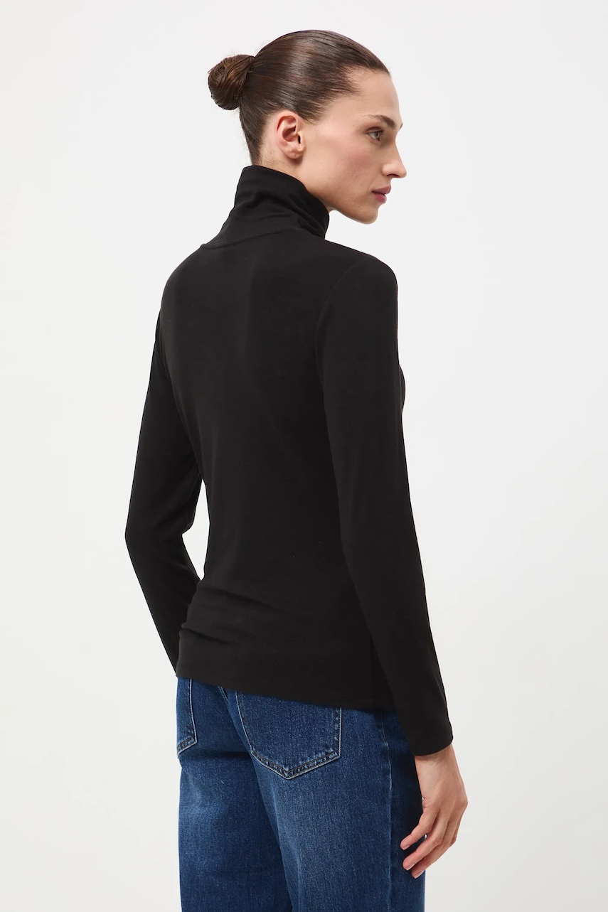 - Fason slim fit. - Długi rękaw. - Model z golfem. - Gładka dzianina. - Model wykonany z dzianiny z lyocellem i wełną. - Długość rękawa: 61 cm. - Długość: 62 cm. - Szerokość w biuście: 41 cm. - Wymiary podane dla rozmiaru: S.