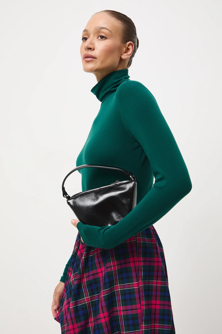 - Fason slim fit. - Długi rękaw. - Model z golfem. - Gładka dzianina. - Model wykonany z dzianiny z lyocellem i wełną. - Długość rękawa: 61 cm. - Długość: 62 cm. - Szerokość w biuście: 41 cm. - Wymiary podane dla rozmiaru: S.