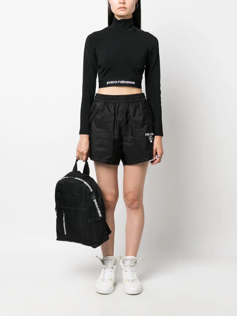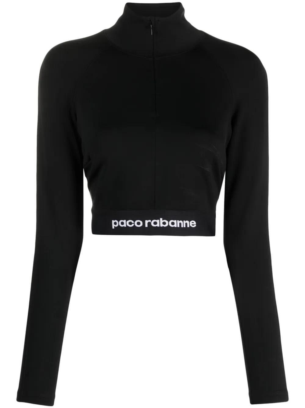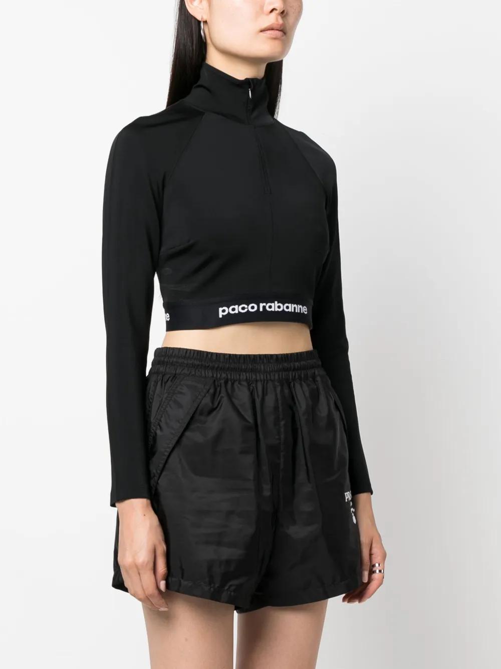 black stretch-jersey logo underband stand-up collar half front zip fastening long raglan sleeves cropped straight hem