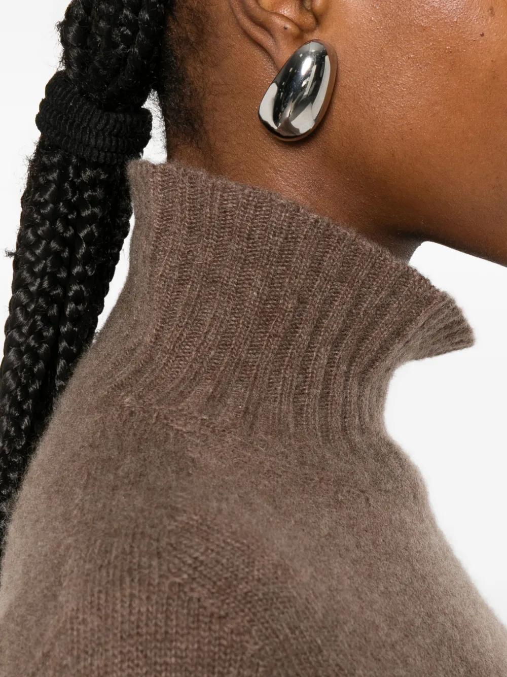 hazelnut brown funnel neck long sleeves ribbed hem ribbed cuffs