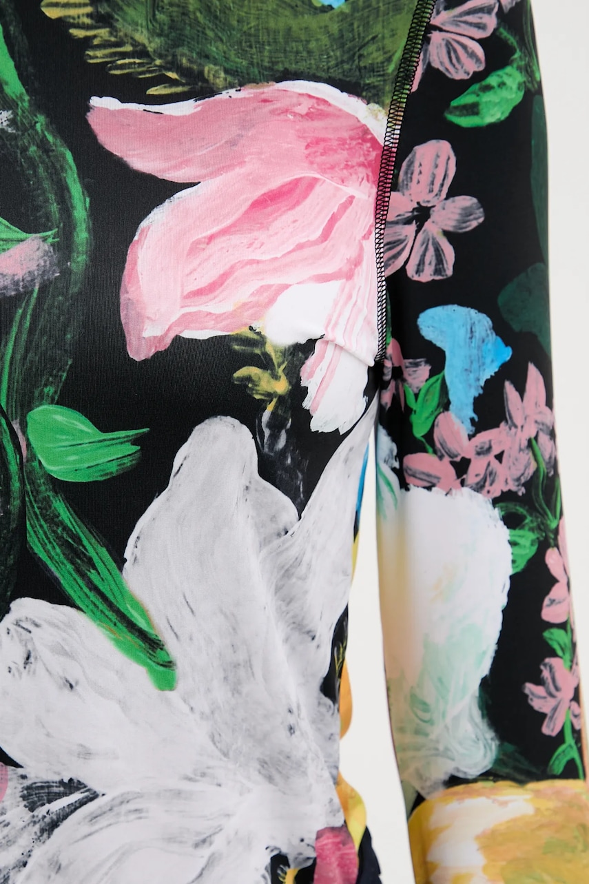 - Ten produkt został częściowo uszyty z poliestru pochodzącego z recyklingu. - Dopasowany, podkreślający sylwetkę fason. - Klasyczny, okrągły dekolt. - Cienka, elastyczna dzianina. - Długość rękawa: 64 cm. - Długość: 60 cm. - Szerokość pod pachami: 40 cm. - Wymiary podane dla rozmiaru: XS/S.
