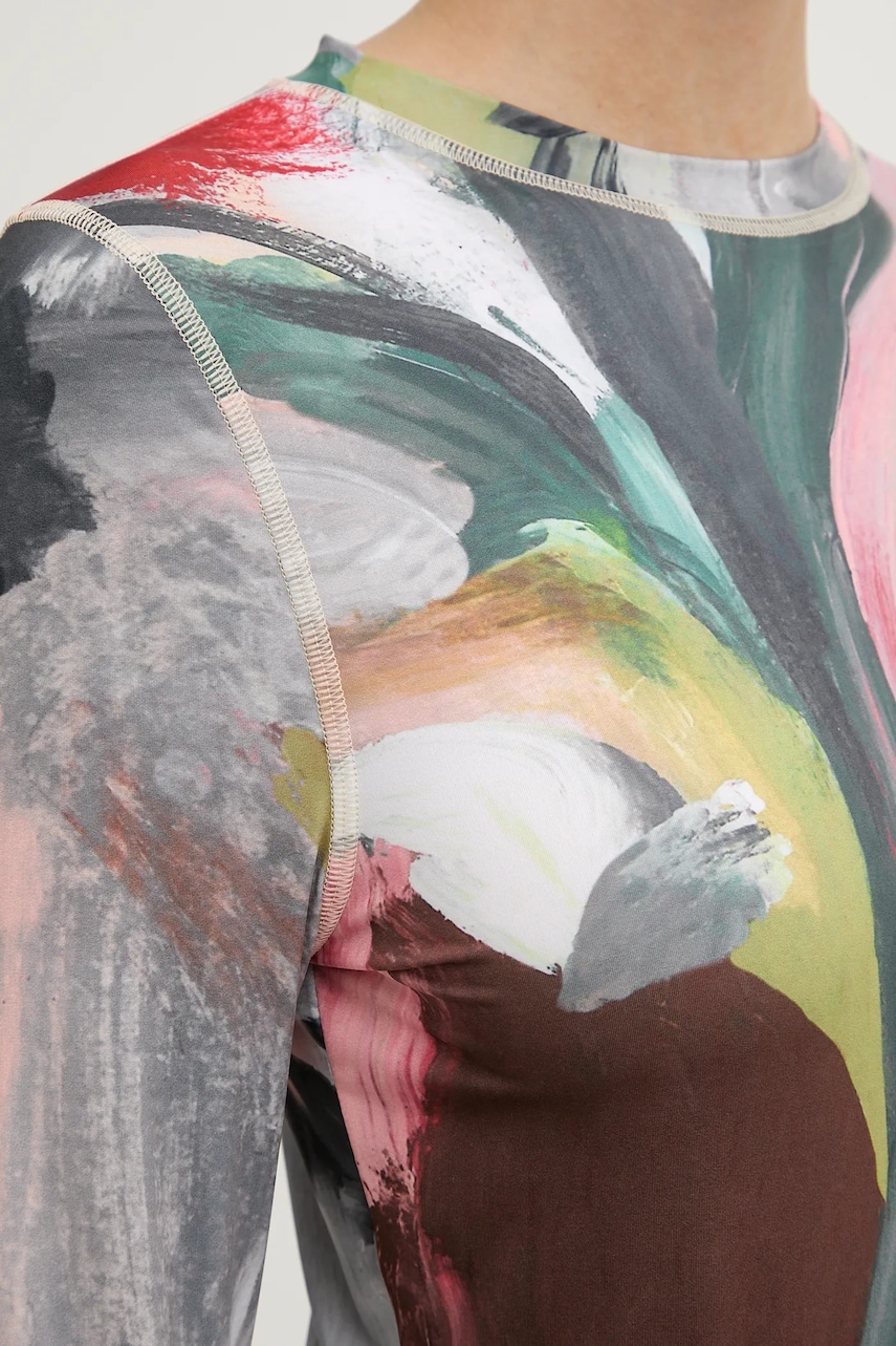 - Ten produkt został częściowo uszyty z poliestru pochodzącego z recyklingu. - Dopasowany, podkreślający sylwetkę fason. - Klasyczny, okrągły dekolt. - Długi rękaw. - Długość rękawa: 63 cm. - Długość: 61 cm. - Szerokość pod pachami: 38 cm. - Wymiary podane dla rozmiaru: XS/S.