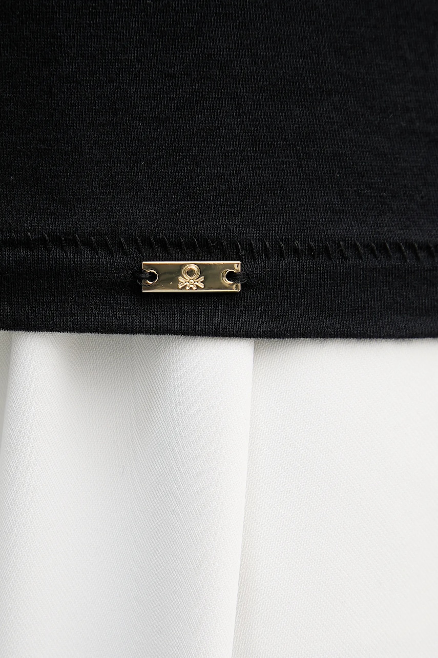 United Colors of Benetton longsleeve z domieszką kaszmiru kolor czarny 3LRU3M076