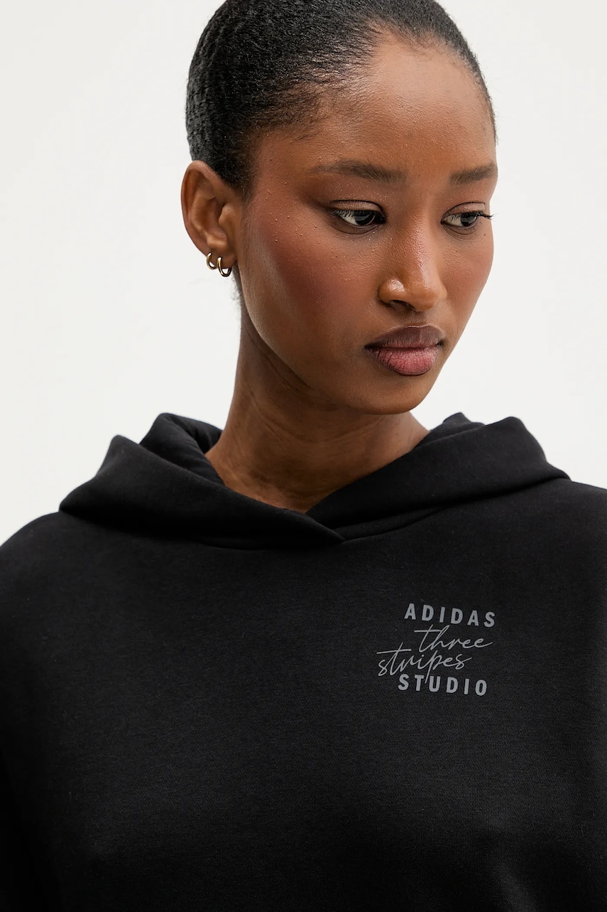 adidas bluza damska kolor czarny z kapturem z nadrukiem KT0878