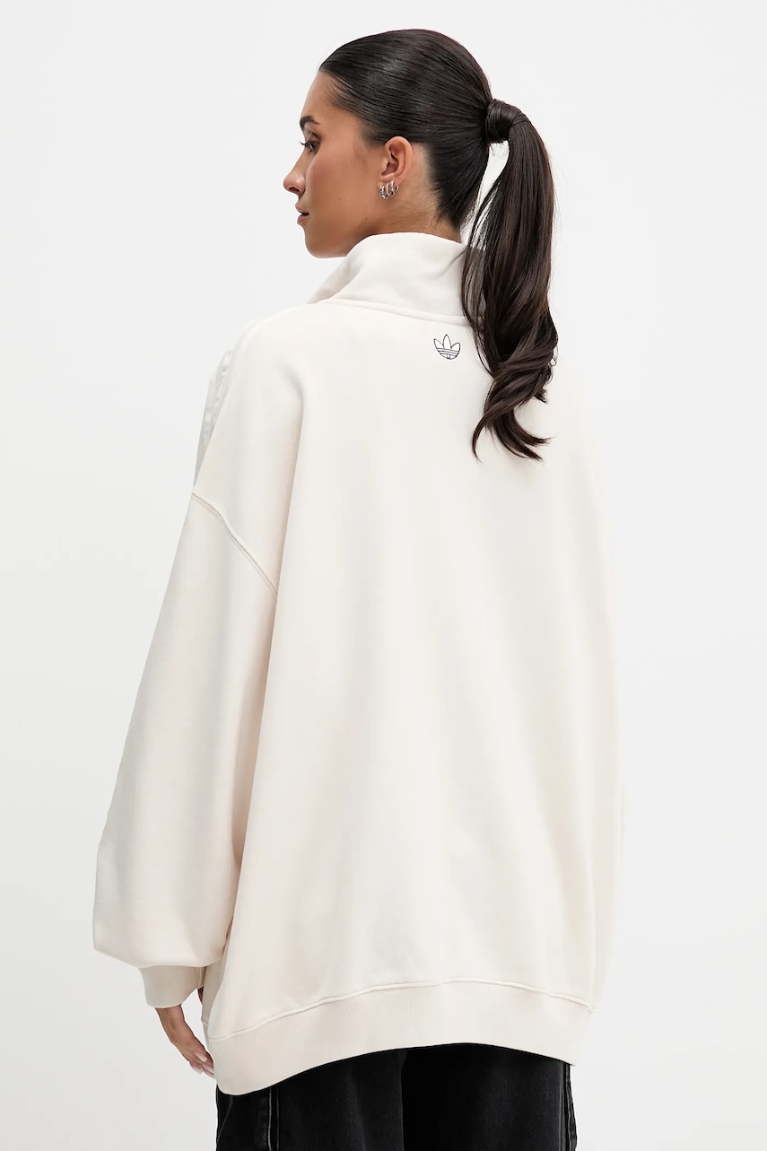 adidas Originals bluza bawełniana Quarter Zip damska kolor beżowy z kapturem z aplikacją KF2310