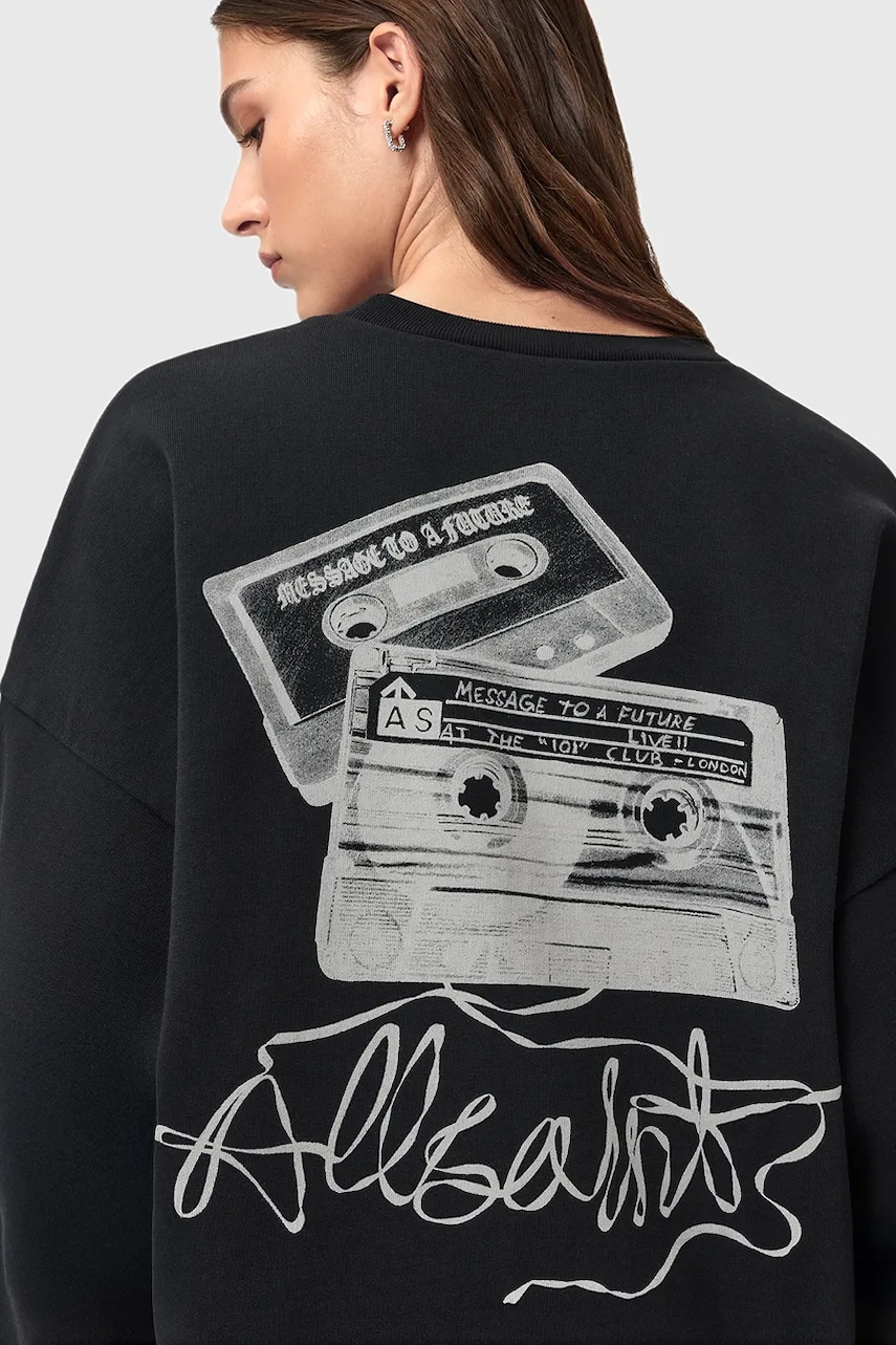 AllSaints bluza bawełniana REEL damska kolor czarny wzorzysta W020JD