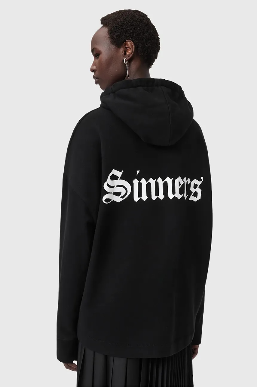AllSaints bluza bawełniana SAINT damska kolor czarny z kapturem z nadrukiem W140JD