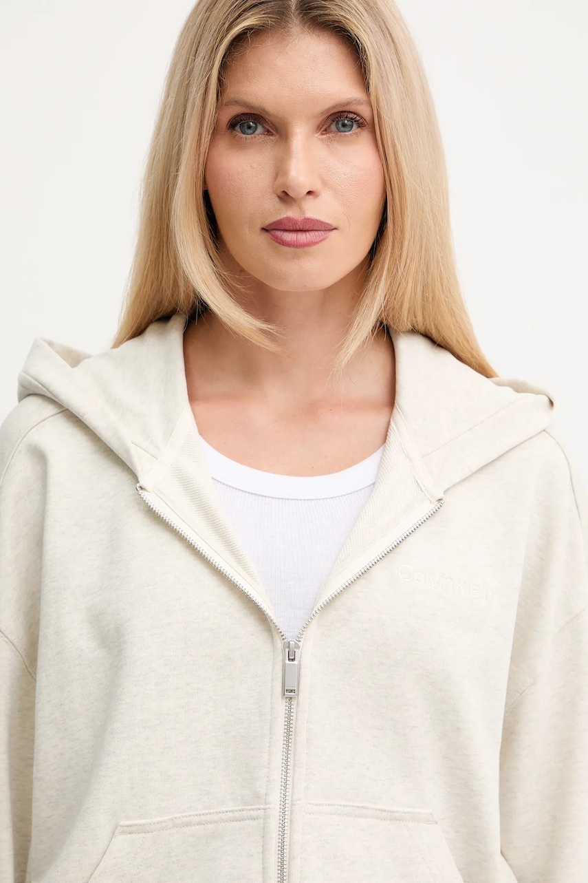 Calvin Klein bluza bawełniana damska kolor beżowy z kapturem gładka LV044C211G