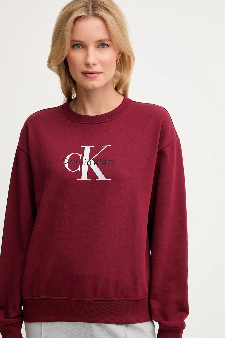 Calvin Klein Jeans bluza damska kolor bordowy z nadrukiem LV047B234G
