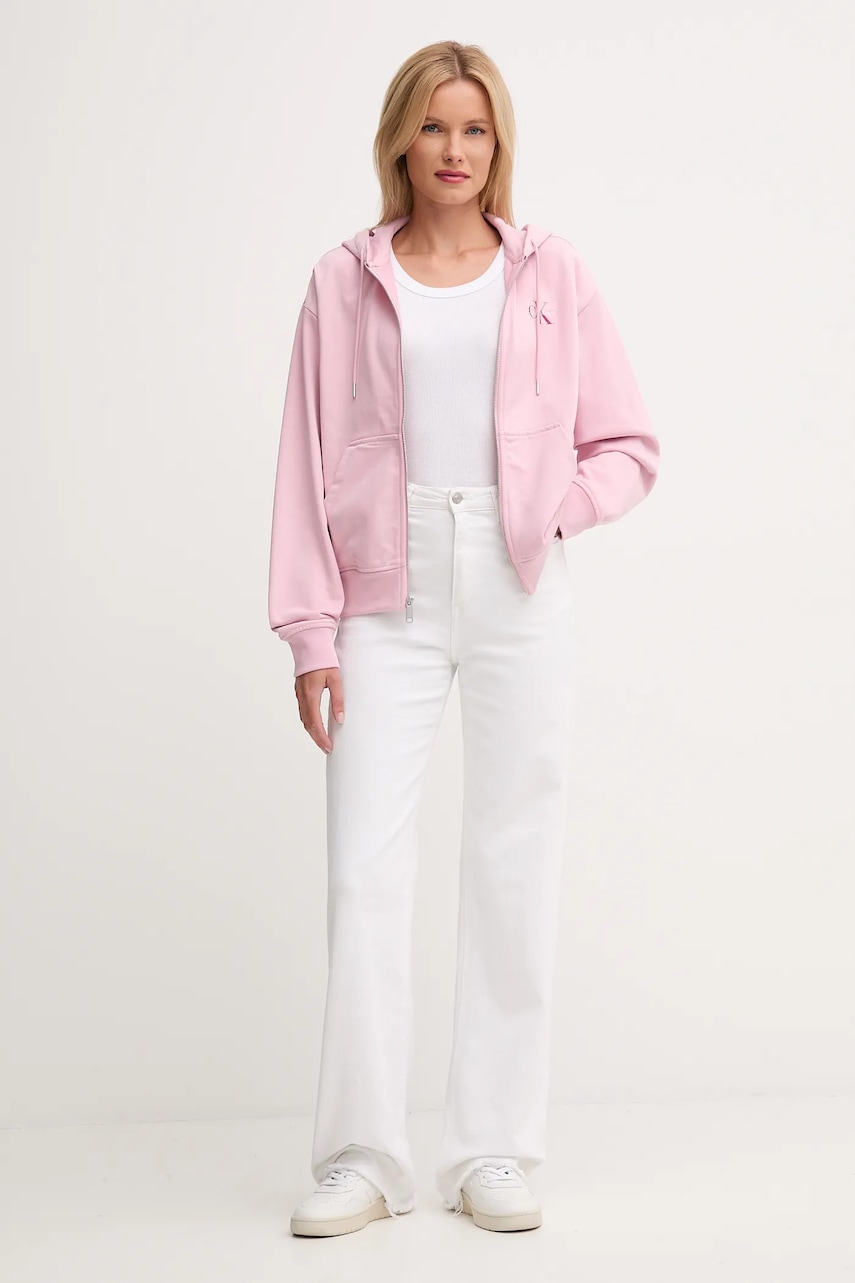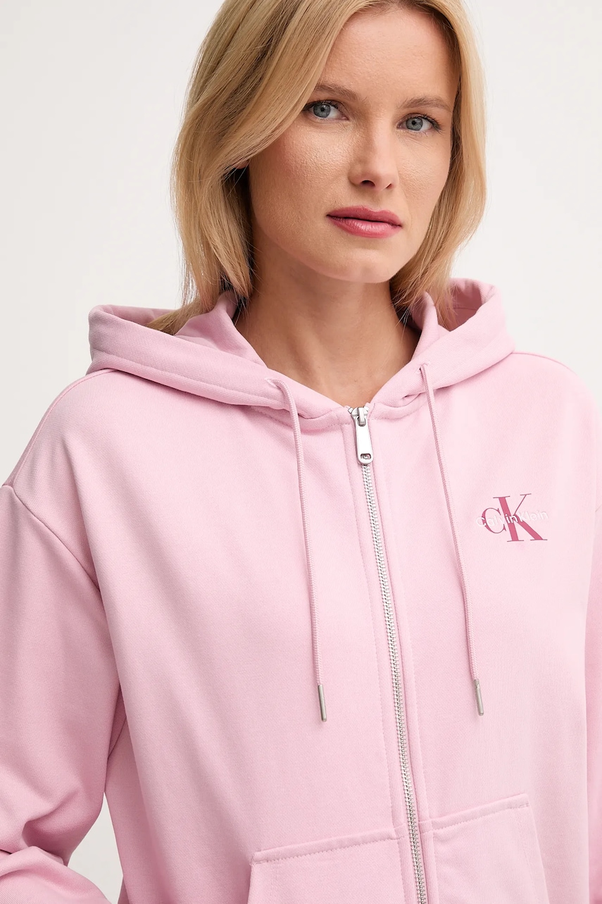 Calvin Klein Jeans bluza damska kolor różowy z kapturem z nadrukiem LV047B270G