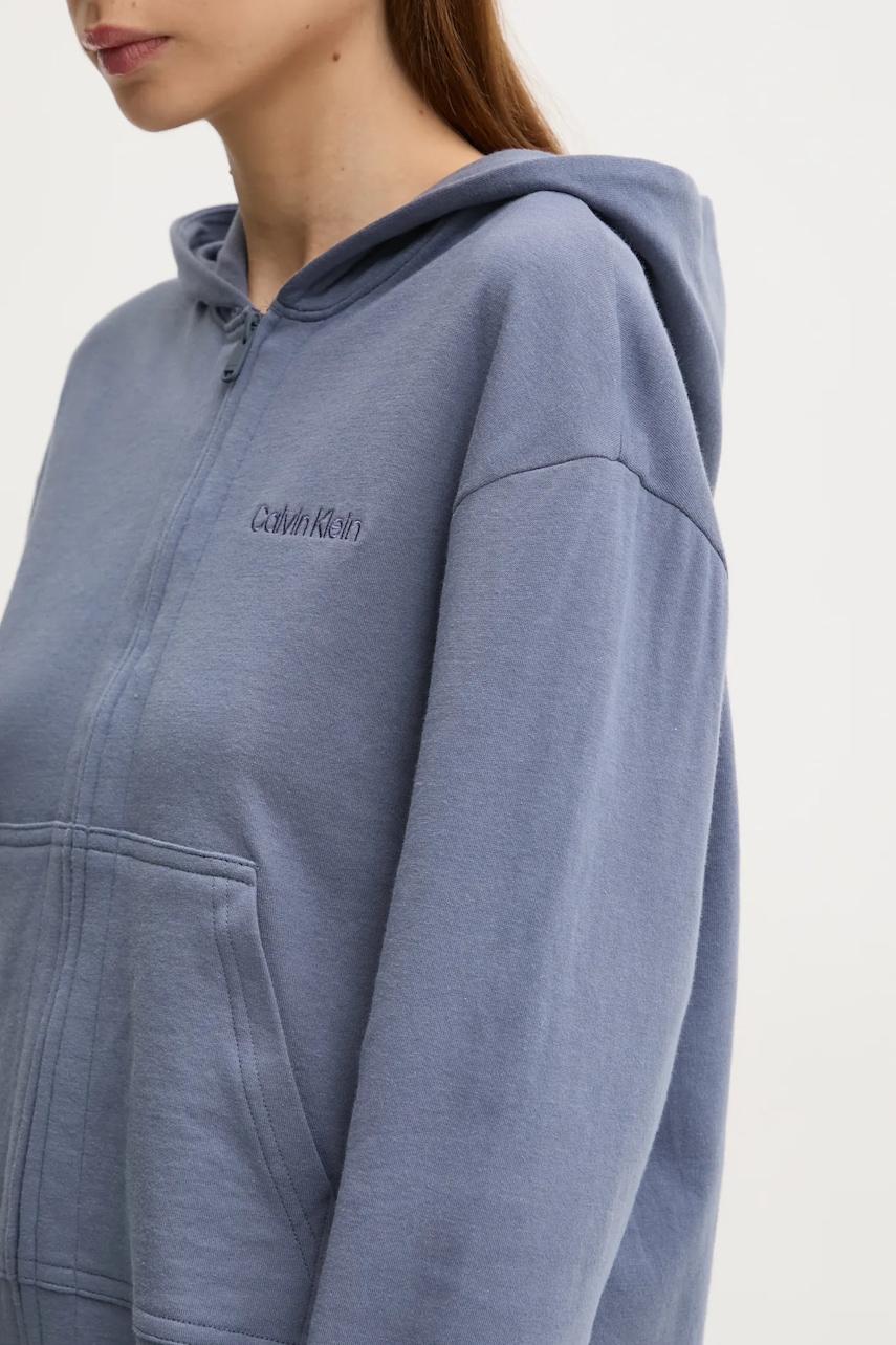 Calvin Klein Underwear bluza damska kolor niebieski z kapturem gładka LV00QS7504