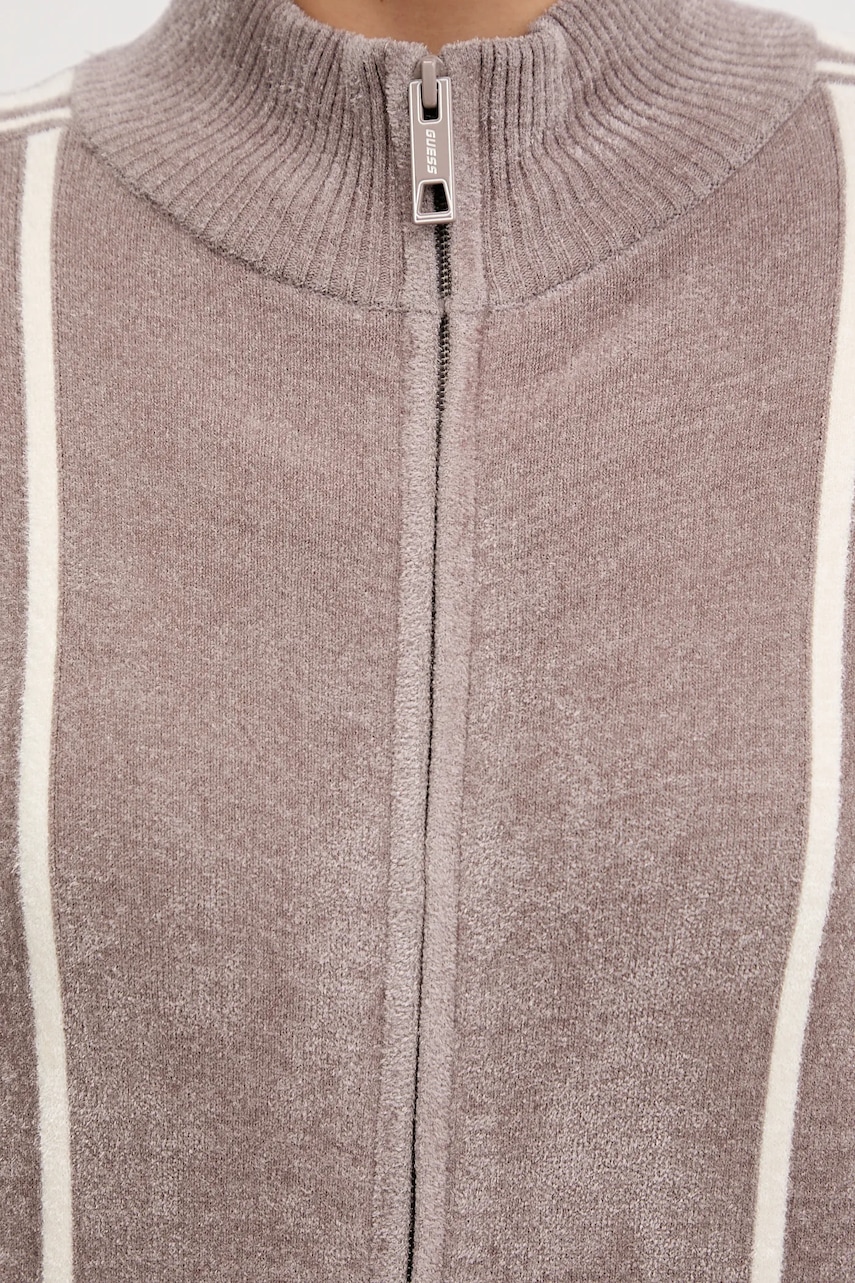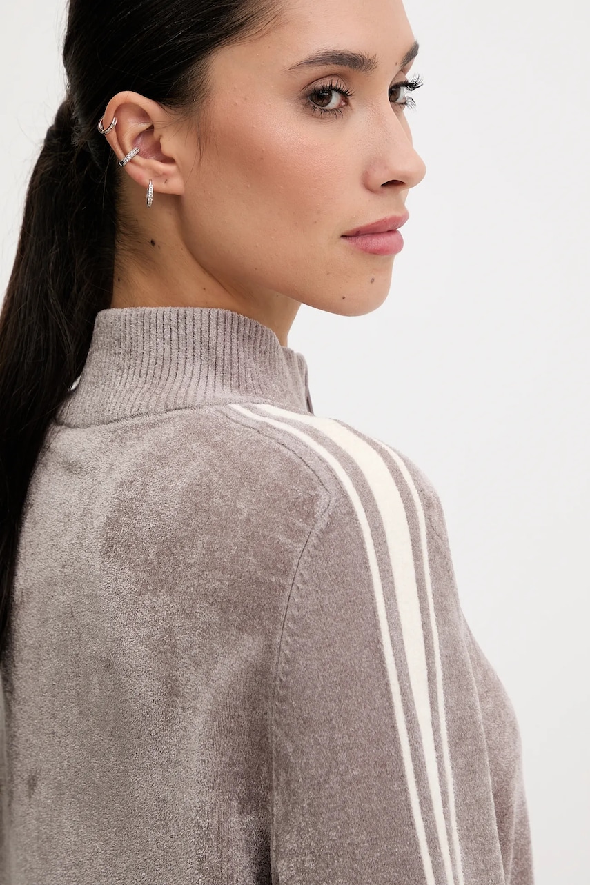 - Luźny krój zapewniający pełną swobodę ruchów. - Podwyższony kołnierz gwarantuje dodatkową ochronę przed chłodem. - Zapięcie na suwak. - Dwie wsuwane kieszenie boczne. - Model z lampasami. - Długość rękawa: 65 cm. - Długość: 66 cm. - Szerokość pod pachami: 48 cm. - Wymiary podane dla rozmiaru: S.