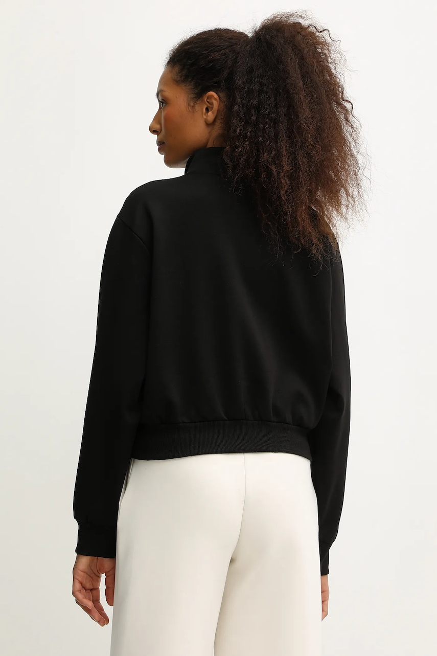 - Bawełna organiczna uprawiana jest bez użycia niebezpiecznych dla zdrowia substancji chemicznych, chemicznych środków szkodnikobójczych czy nawozów sztucznych. - Luźny krój zapewniający pełną swobodę ruchów. - Długi rękaw. - Krój rękawa z obniżoną linią ramion nie ogranicza mobilności. - Rękawy i dolna krawędź wykończona wygodnym, elastycznym ściągaczem. - Model z aplikacją. - Długość rękawa(mierzona od kołnierza): 62 cm. - Długość: 54 cm. - Szerokość pod pachami: 61 cm. - Wymiary podane dla rozmiaru: S.