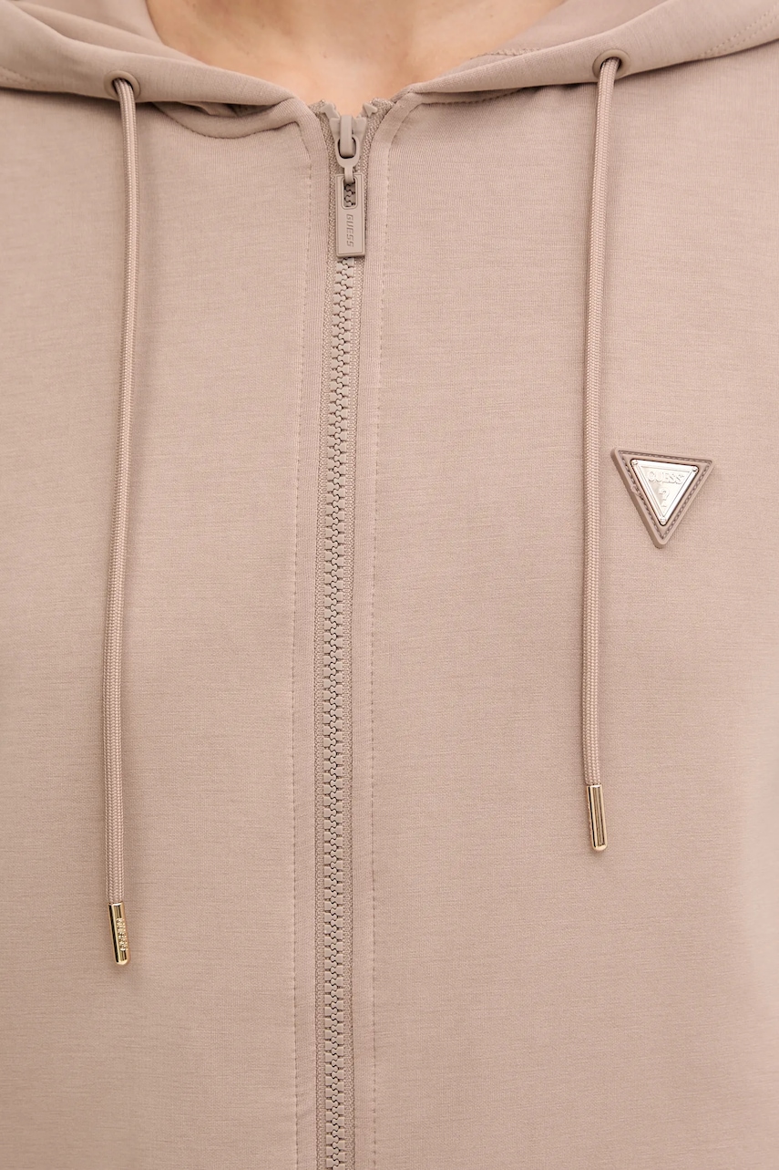 Guess bluza OLYMPE damska kolor beżowy z kapturem gładka V4YQ06 KCAY2