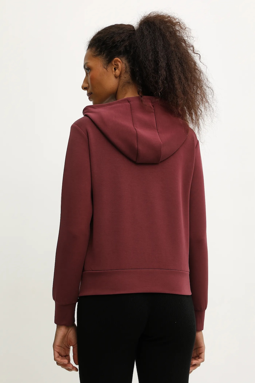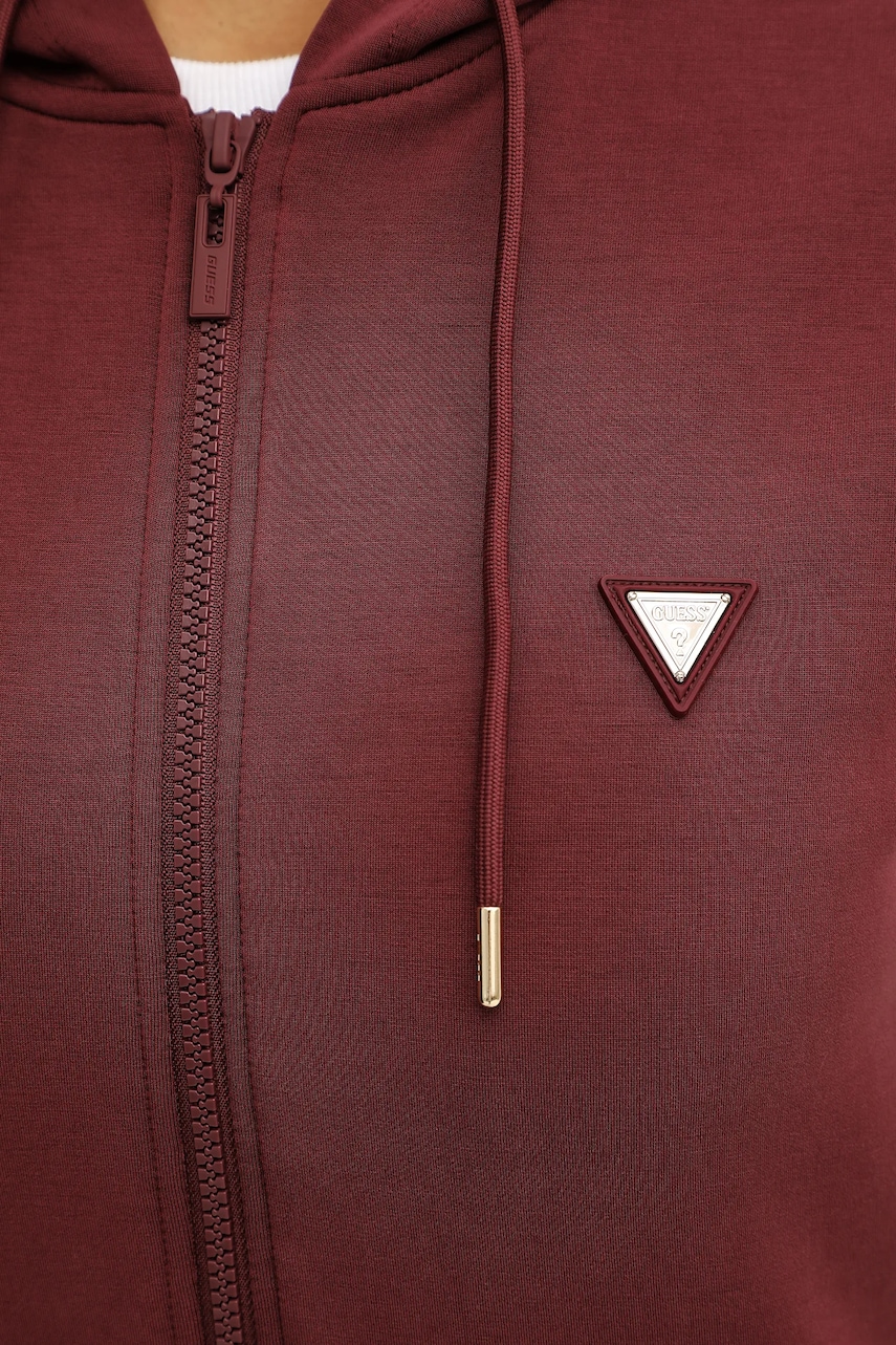 Guess bluza OLYMPE damska kolor bordowy z kapturem gładka V4YQ06 KCAY2