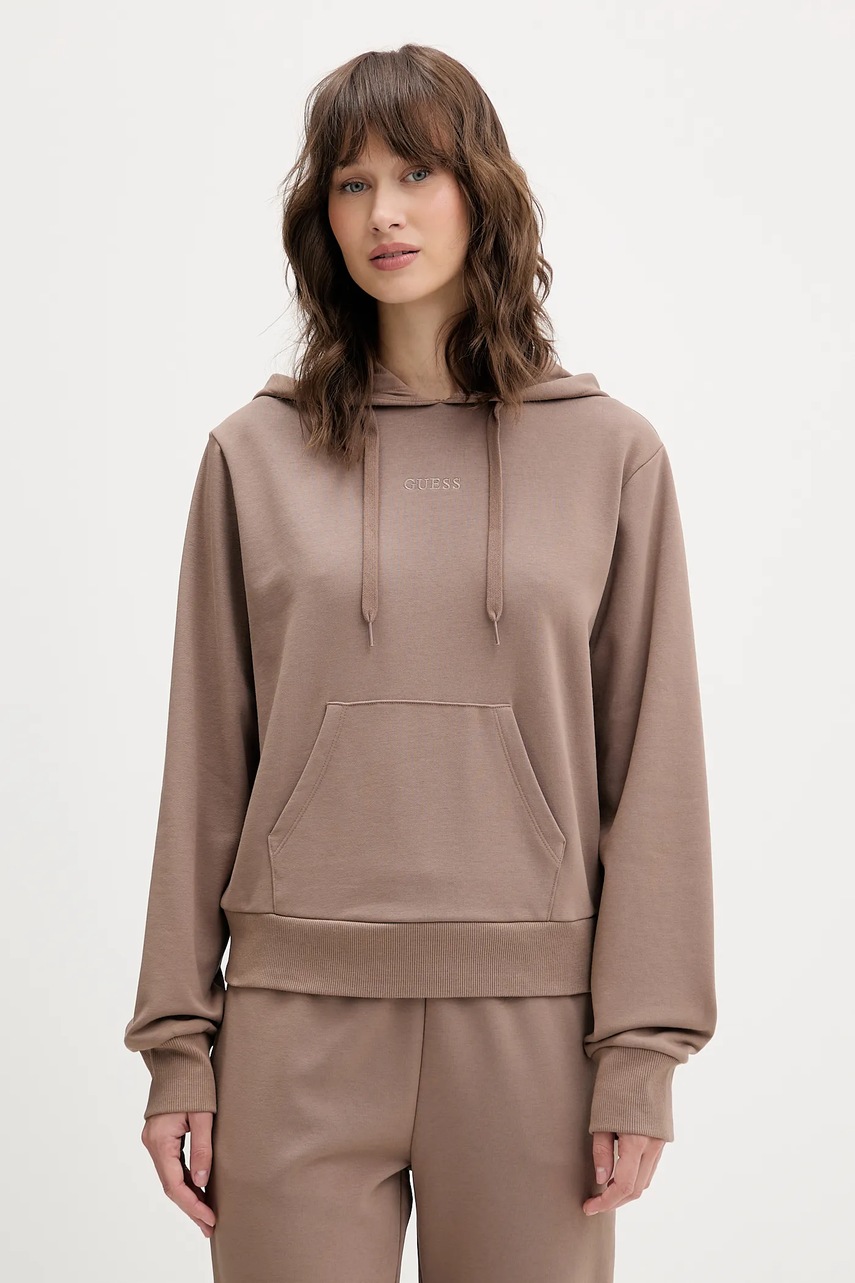Guess bluza SOFIA damska kolor brązowy z kapturem gładka O5RQ02 KCO31