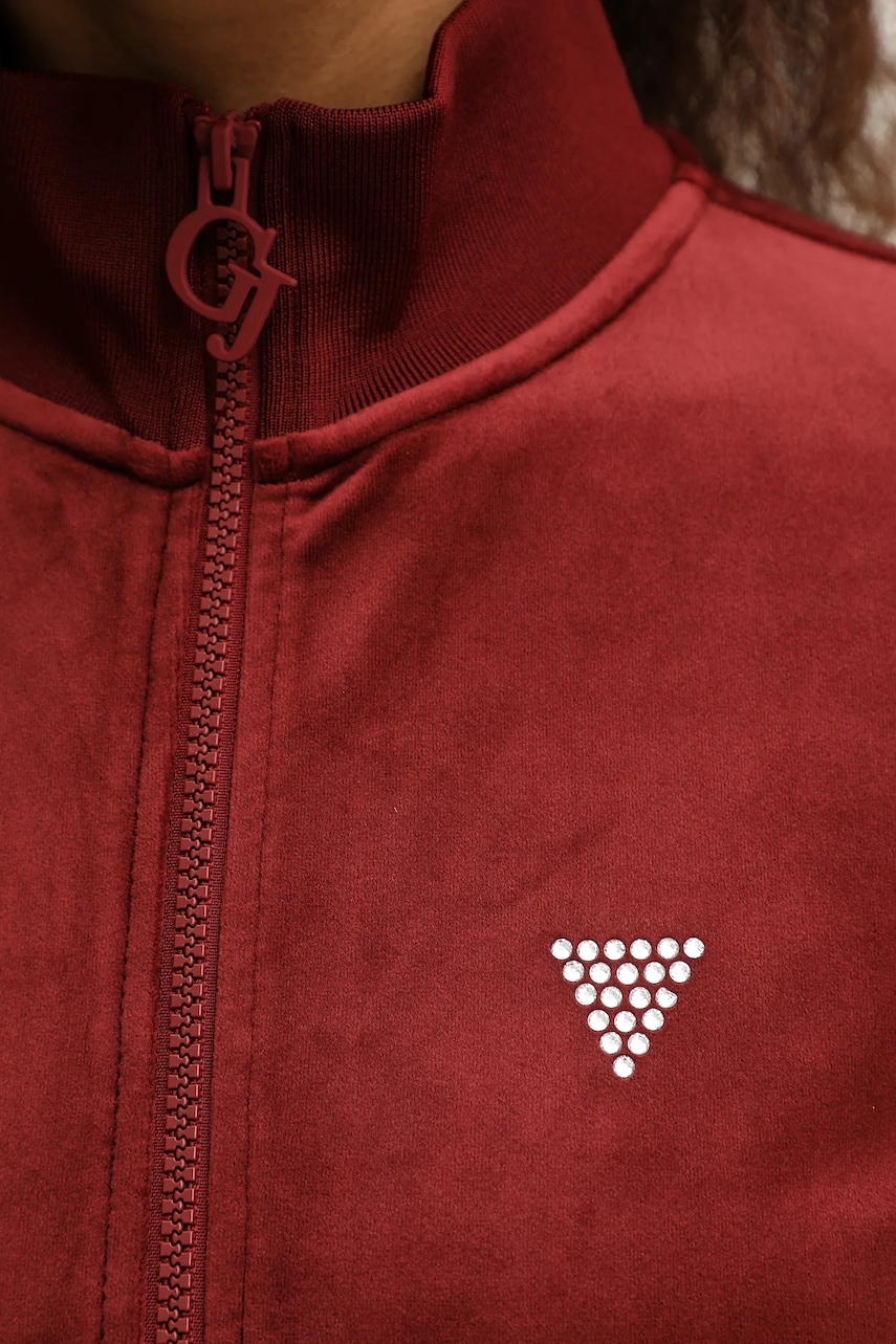 Guess bluza welurowa COUTURE damska kolor bordowy gładka V3BQ22 K0232